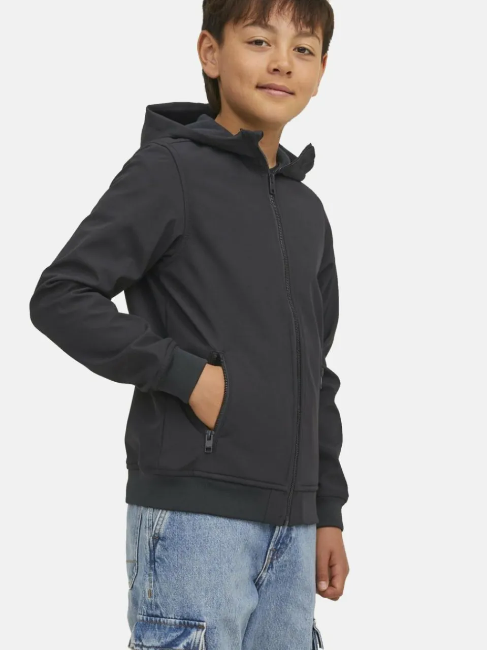 Diese Softshelljacke ist der ideale Begleiter für abenteuerlustige Jungs. Der Reißverschluss mit Kinnschutz und die hochschließende Kapuze schützen vor Wind und Wetter. Seitliche Reißverschlusstaschen bieten Stauraum, während der gerippte Bund und Ärmelbündchen für bequemen Sitz sorgen. Das wasserabweisende Material hält trocken. Ein dezenter Label-Aufnäher am Ärmel setzt einen stilvollen Akzent. Ideal für Schule, Freizeit und Outdoor-Abenteuer – funktional, robust und modisch.