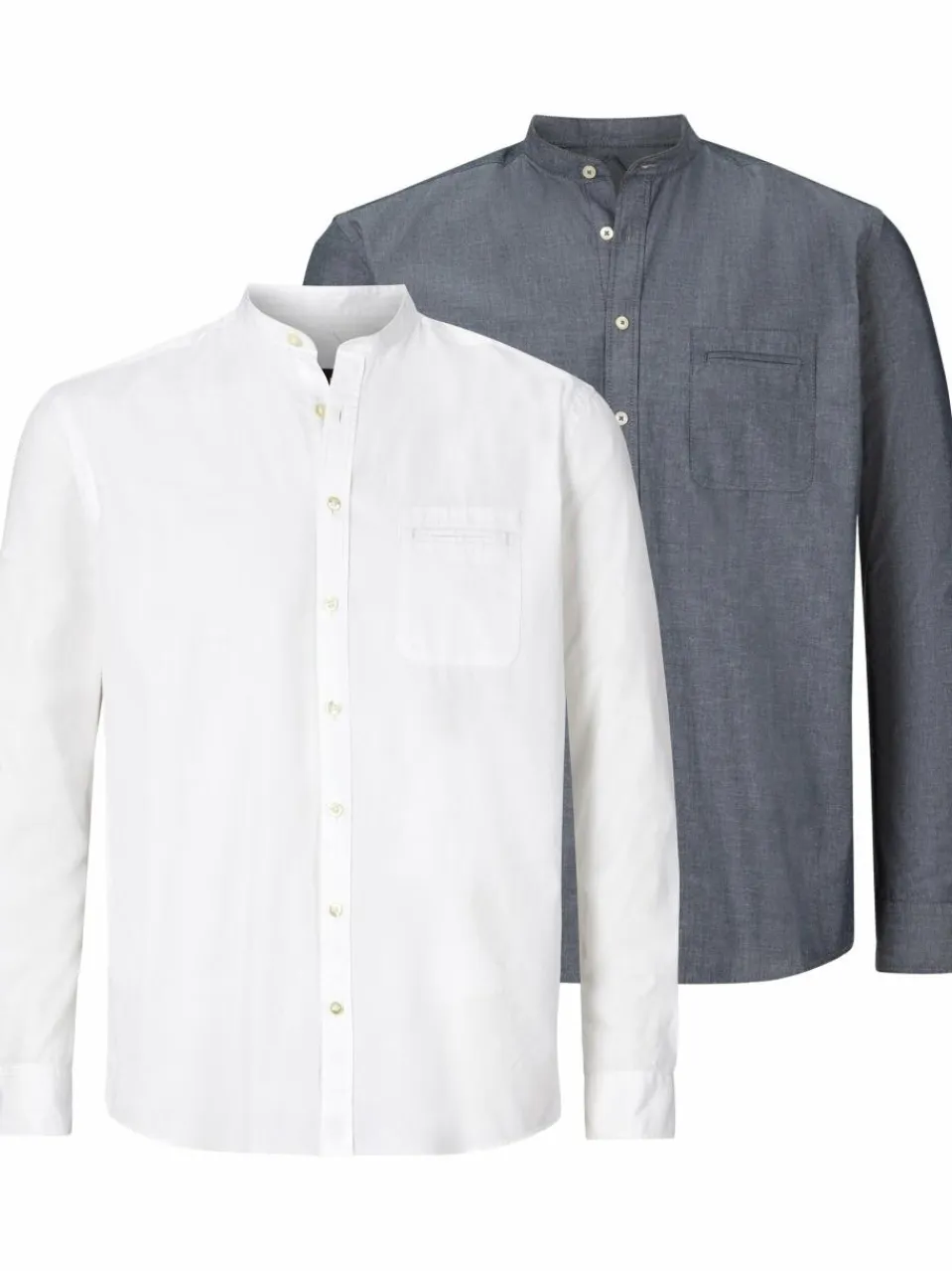 Jan Vanderstorm Hemden<Herren Doppelpack Hemd – HEIMIR weiß blau uni
