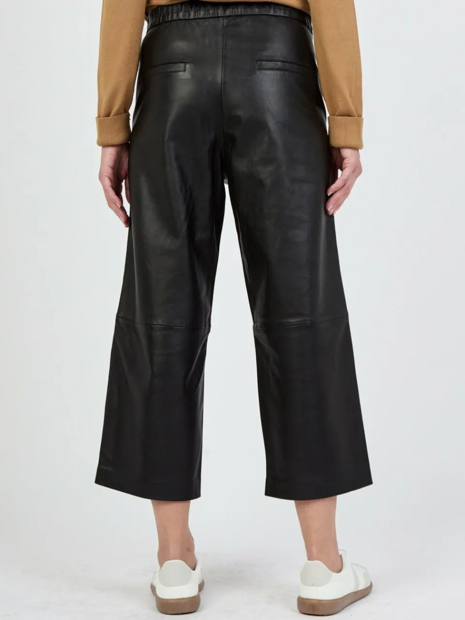 Diese elegante Damen-Lederhose der Marke JCC ist aus hochwertigem, weichem Lamm-Nappaleder gefertigt und überzeugt mit edlem Glanz und geschmeidiger Haptik. Dank des elastischen Bundes bietet die Hose einen besonders hohen Tragekomfort und optimale Bewegungsfreiheit. Der moderne Culotte-Schnitt sorgt für eine modische Silhouette und verleiht dem Outfit eine stilvolle Note.
