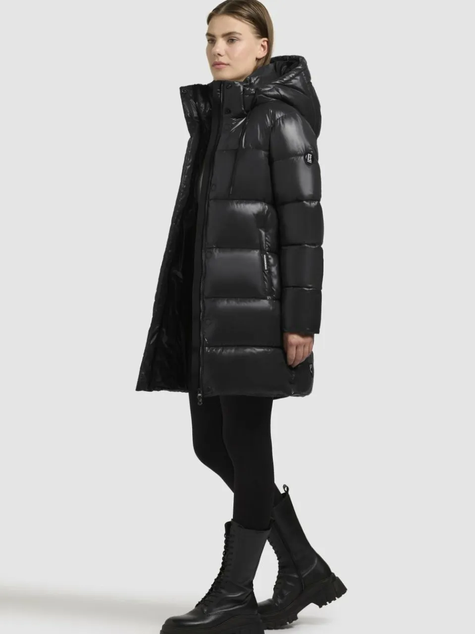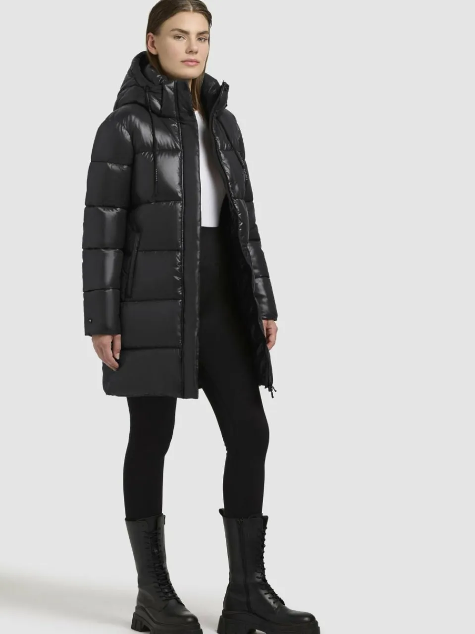Dieser Winter-Steppmantel beeindruckt durch seine moderne, geradlinige Silhouette und das matt schimmernde Obermaterial. Die gesteppte Optik verleiht dem Mantel eine zeitlose Eleganz, während die große, gefütterte Kapuze für einen markanten Akzent sorgt. Ideal für urbane Outfits.