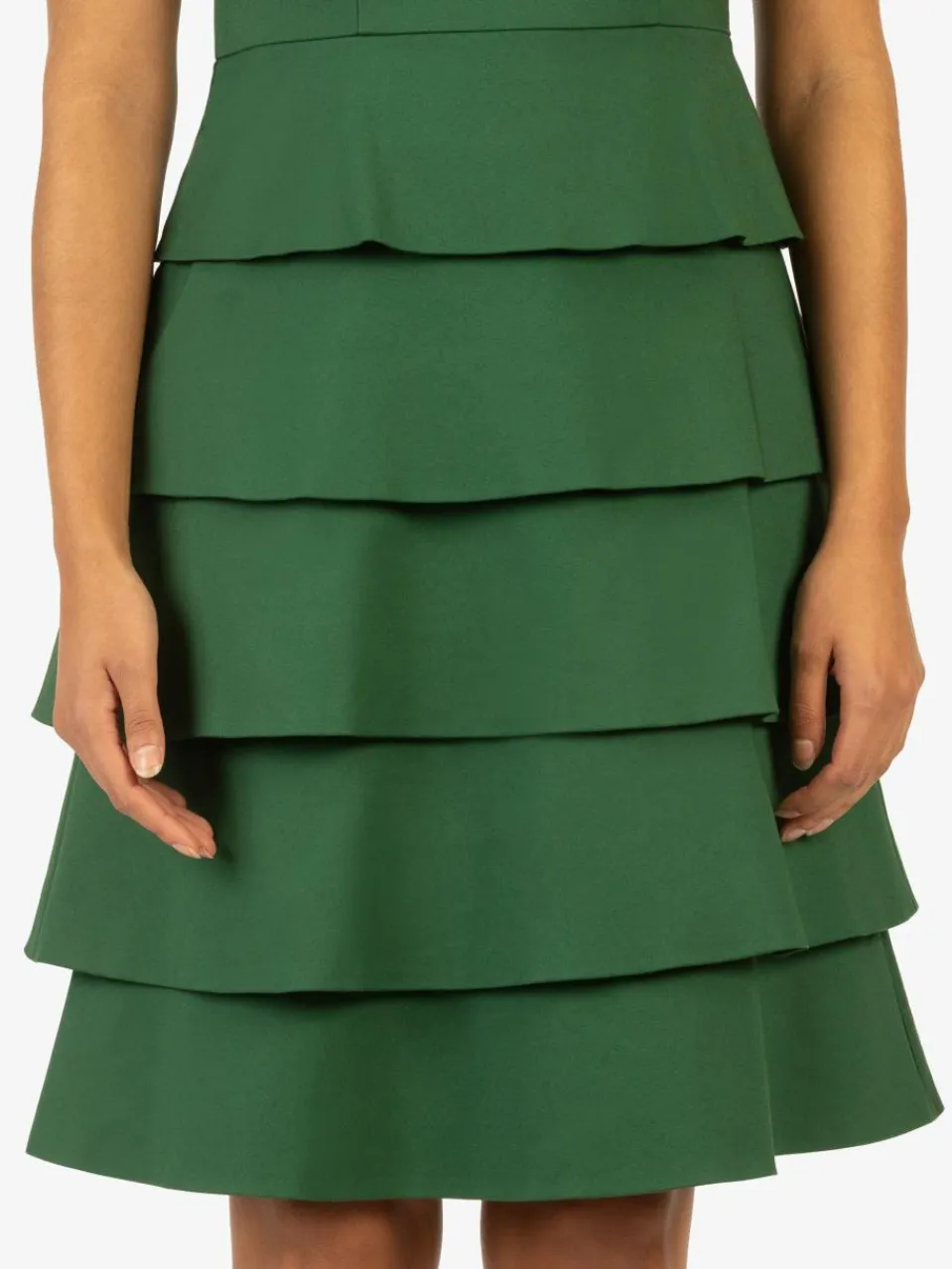 Dieses feminine Kleid zeichnet sich durch sein mehrlagiges Design im Rockbereich aus, das für eine spielerische und stilvolle Silhouette sorgt. Die taillierte Passform und der Rundhalsausschnitt machen es ideal für Partys und elegante Anlässe.