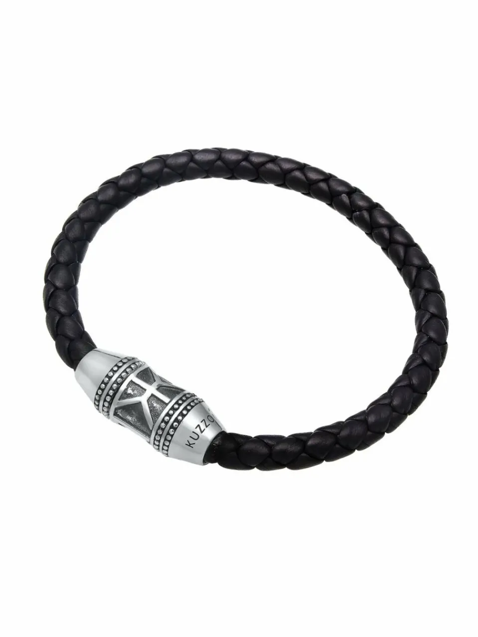 Der maskuline Magnetverschluss gibt dem geflochtenen Lederband seinen besonderen Charakter. Die Aufwendig gearbeitet Magnetschließe aus 925er Sterling Silber wurde mit Logo Symbol geprägt. Das Lederarmband wurde im trendigen Vintage-Look geflochten. Dieses edle Kuzzoi Armband ist ein wahren Hingucker.Für Frauen die ein markantes Armband suchen, eignet sich die Länge von 19 cm. Dieses exklusive Schmuckstück wird in einem eleganten Geschenk-Etui geliefert.