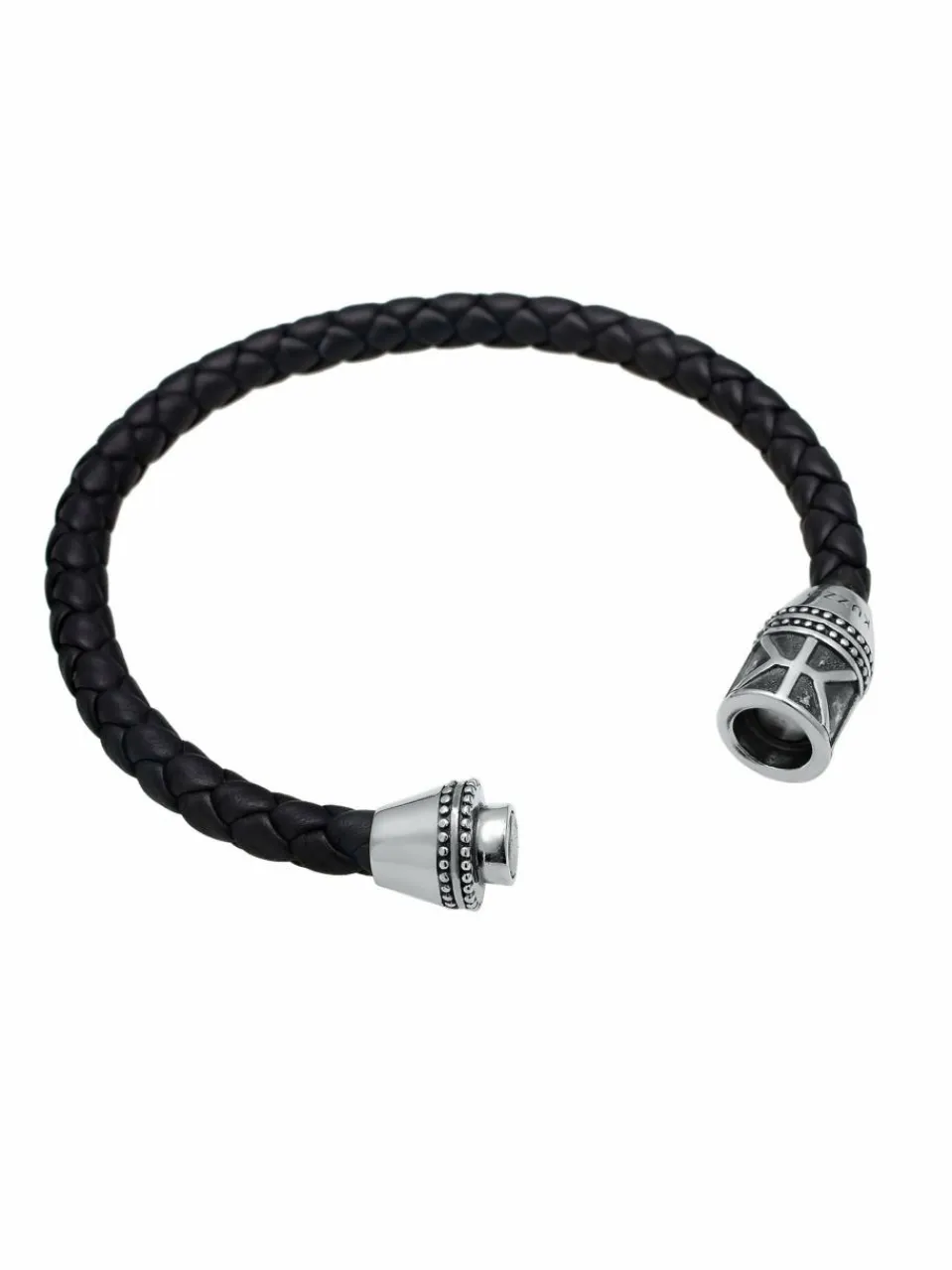 - Herrn Leder-Armband aus 925 Sterling Silber