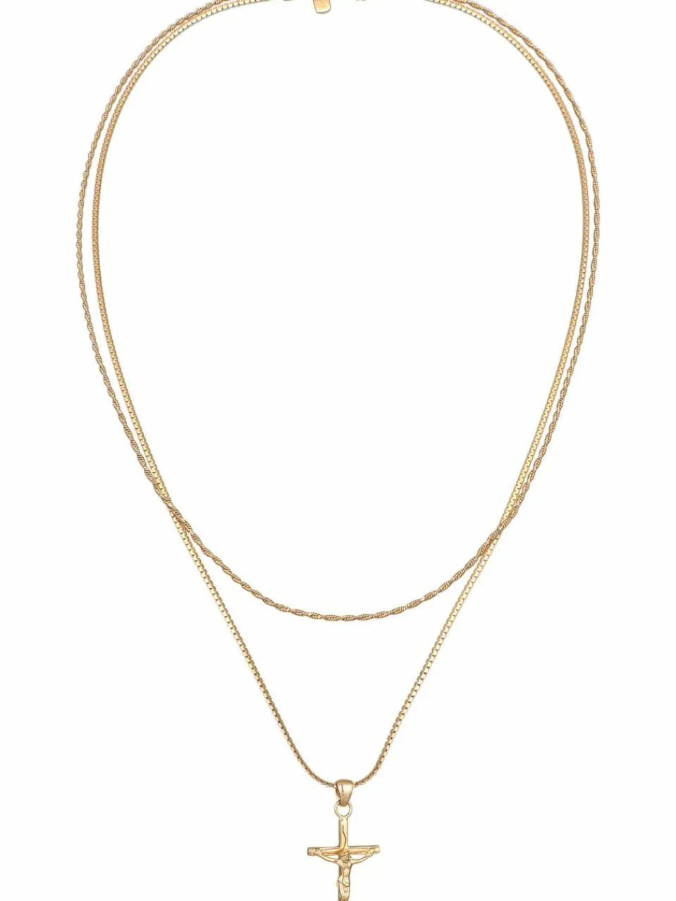 Dieser handgefertigte Halsschmuck für Männer besteht aus feinstem 925er Sterling Silber und verbindet auf elegante Weise den Layer-Look. Die filigrane Kordelkette verleiht dem Schmuckstück eine feminine Note. Ein klassischer Panzerkette mit Kreuz schmückt das Dekolleté. Das Kruzifix auf dem Kreuz gibt der Halskette einen klassischen Touch. Ein Accessoire im modernen Lagenlook das mit seinem bedeutsamen Schutzsymbol ein treuer Begleiter ist. Dieses exklusive Schmuckstück wird in einer eleganten Geschenk-Box geliefert.