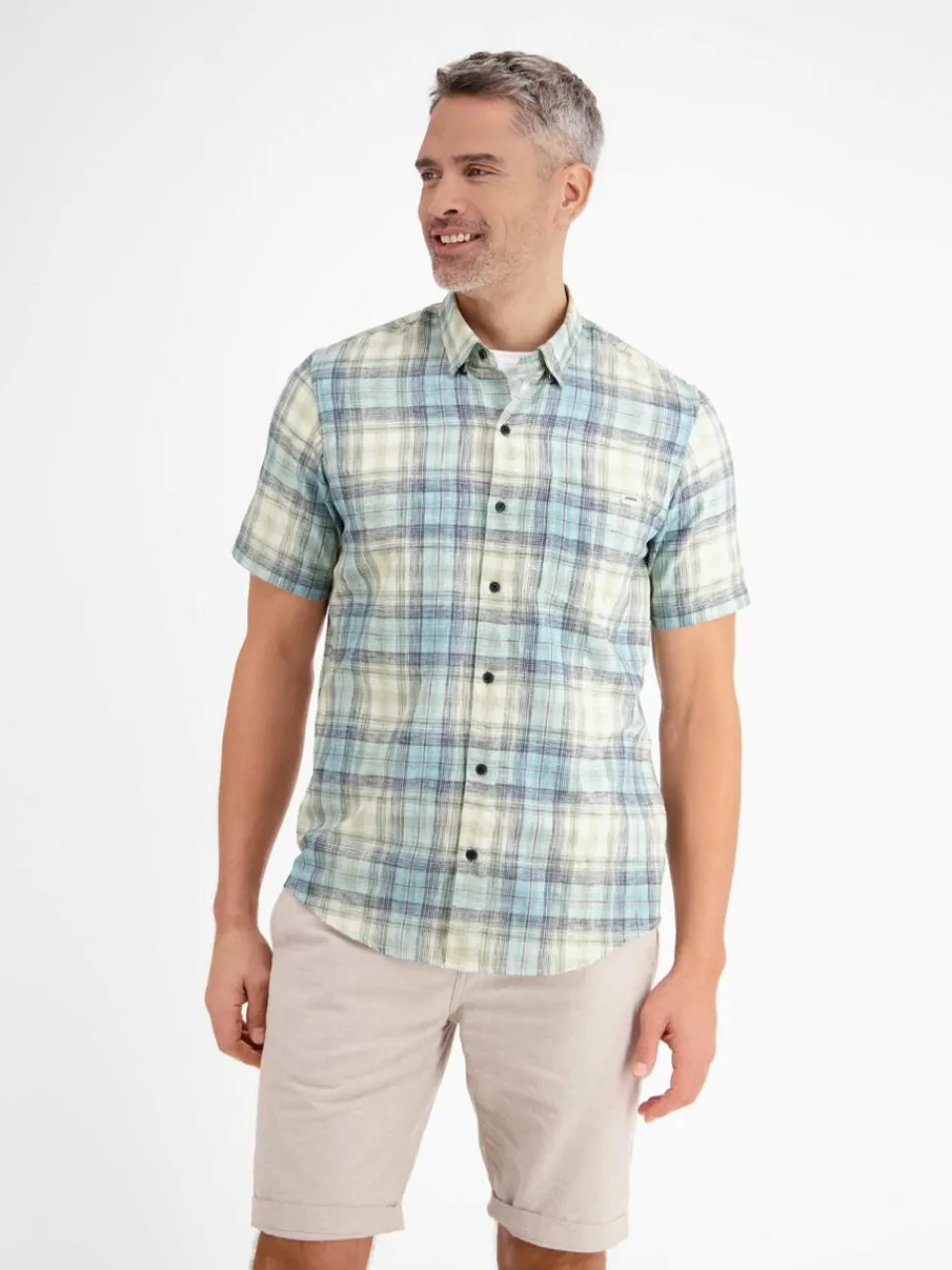 LERROS Hemden<Herren Kurzarmhemd aqua kariert