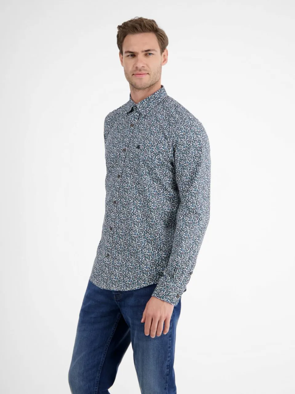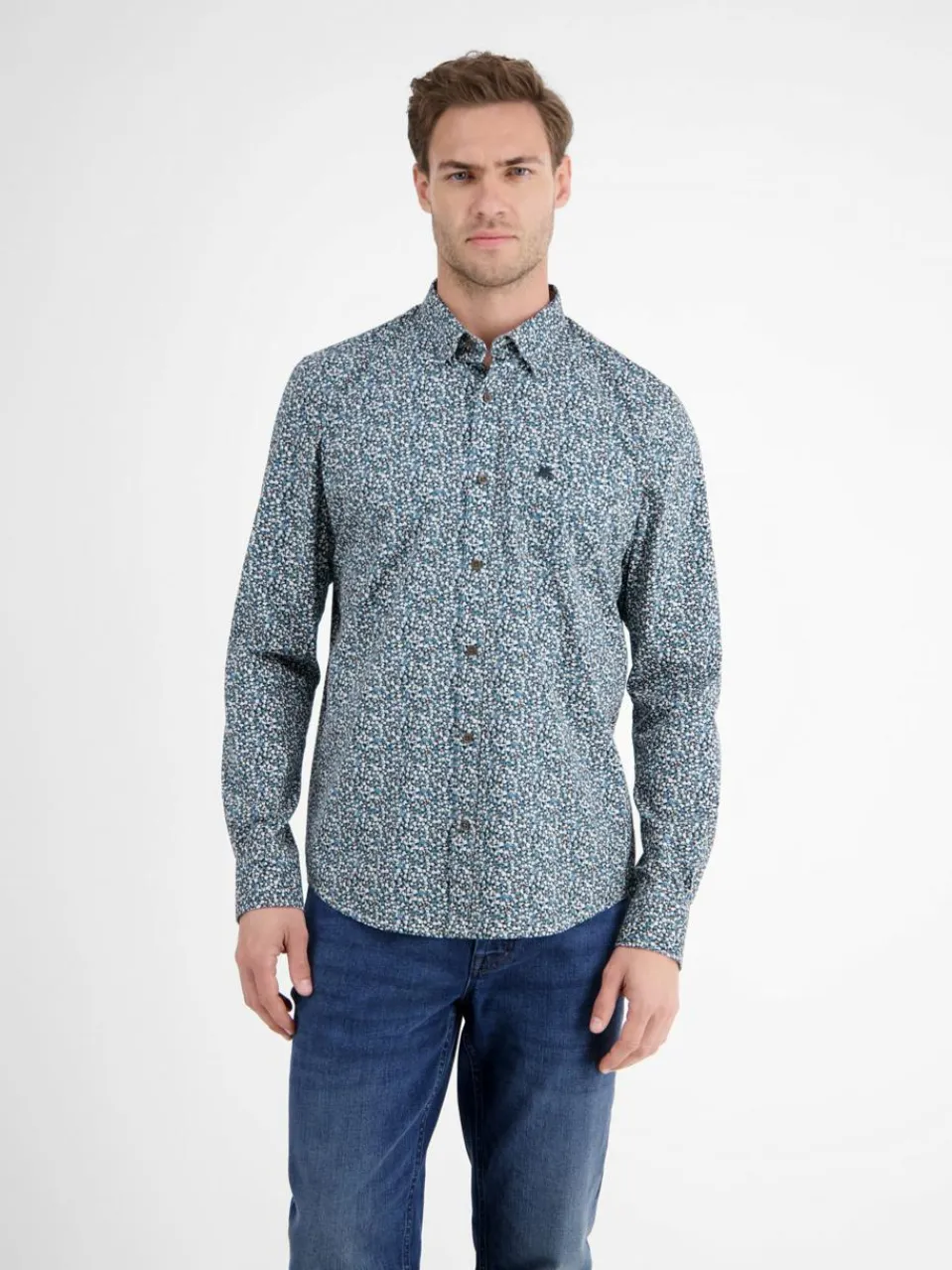 LERROS Hemden<Herren Langarmhemd blau gemustert