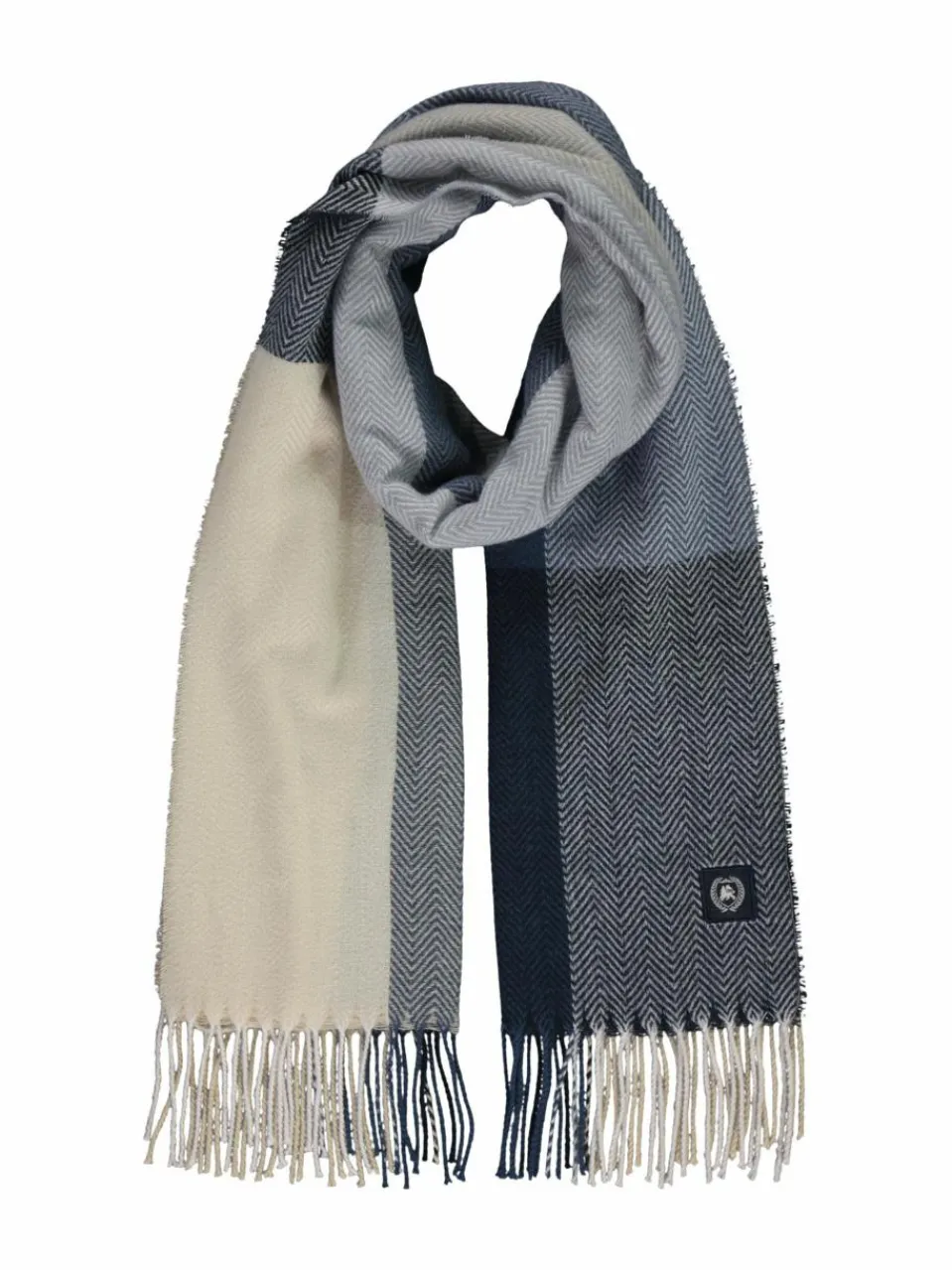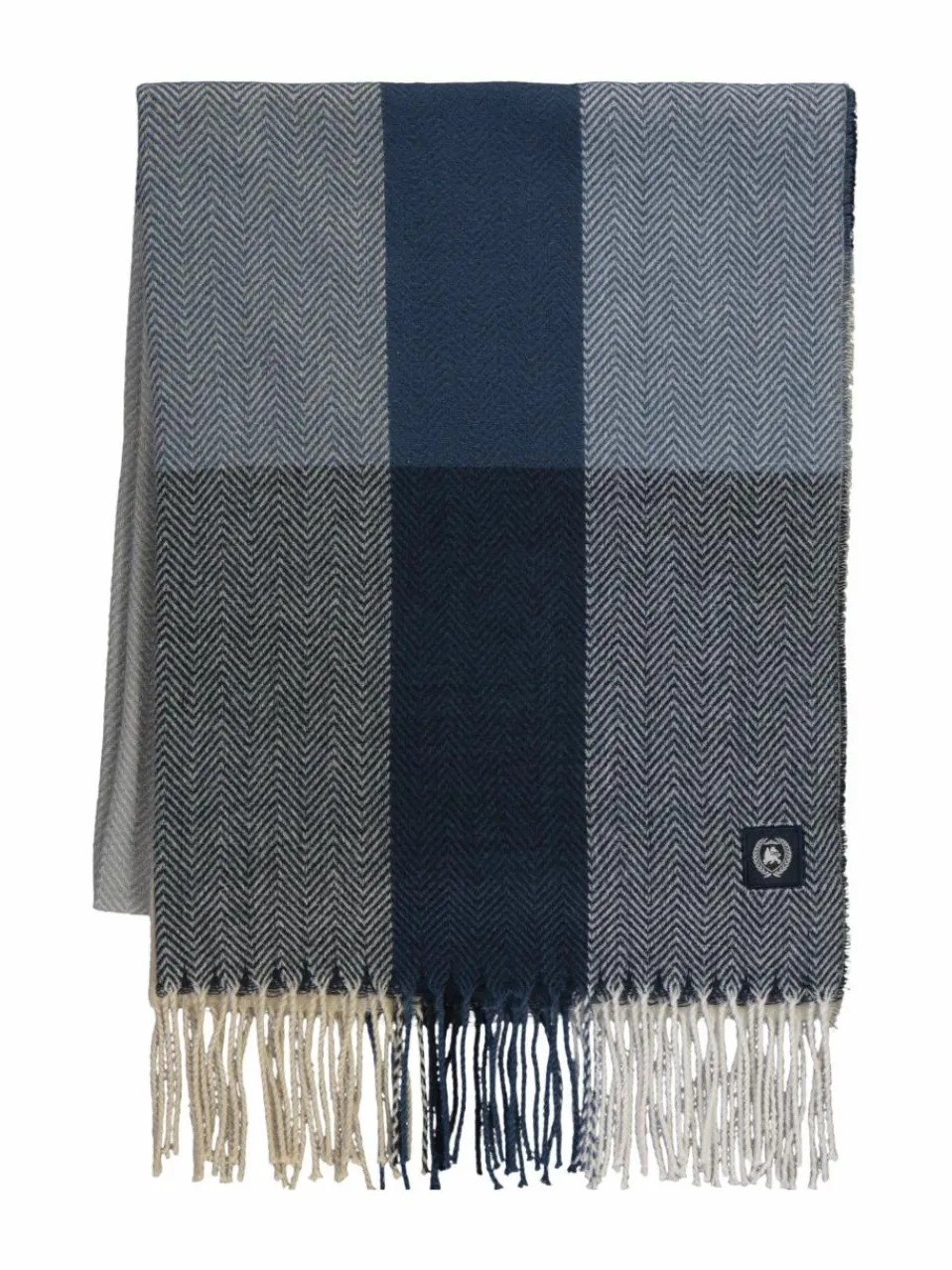 - Breites Schal-Design, lange Fransen