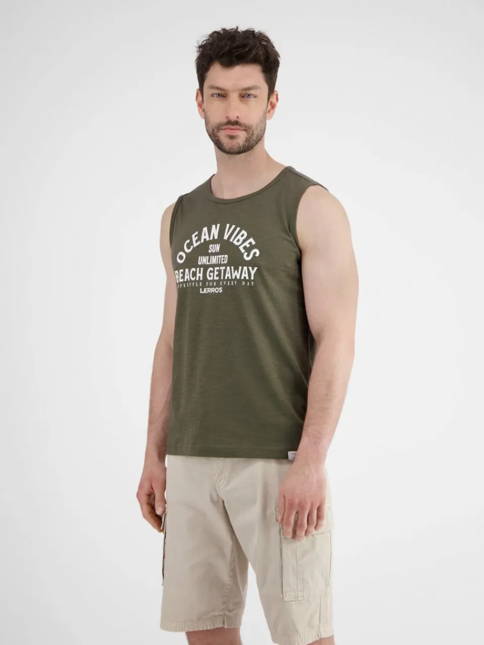 Dieses ärmellose Tanktop von LERROS ist der perfekter Begleiter für warme Tage. Der moderne Schnitt betont die Silhouette, während die leichte Jersey-Baumwollqualität für ein angenehm luftiges Tragegefühl sorgt. Egal, ob entspannt oder aktiv, dieses Tanktop setzt druch den sportiven Brustprint immer ein modisches, sommerliches Statement!