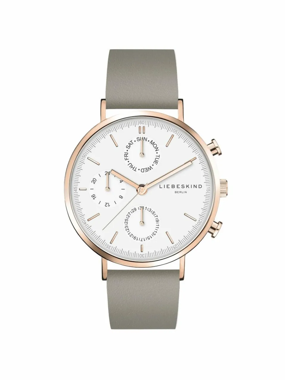 Mulitfunktions Damenuhr der Marke LIEBESKIND BERLIN mit Edelstahlgehäuse und hochwertigem Lederarmband.