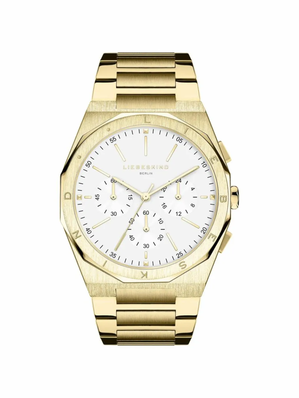 Chronograph der Marke LIEBESKIND BERLIN mit Edelstahlgehäuse und hochwertigem Edelstahlband. Diese schöne Damenuhr verspricht nicht nur besten Tragekomfort, sondern ist auch ein echtes Fashion-Statement am Handgelenk.