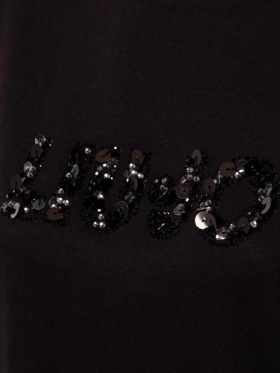 Das Pailletten-Logo auf der Front verleiht dem T-Shirt von Liu Jo Collection Signature-Charakter, während die feine Baumwoll-Qualität für Komfort sorgt.