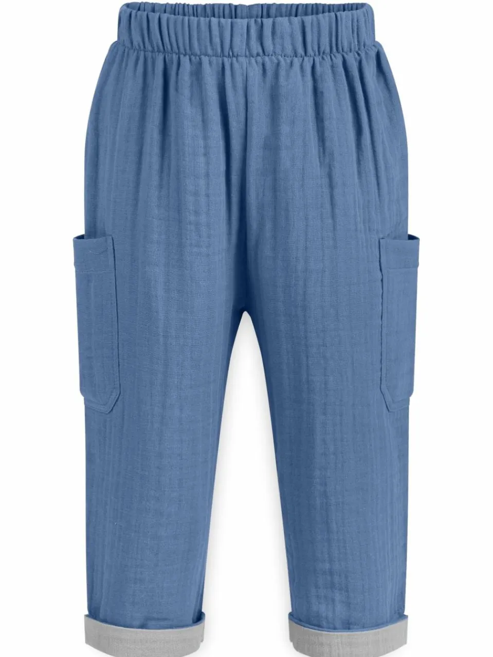 Mababu Jungen<Jungen Hose – Musselin blau uni