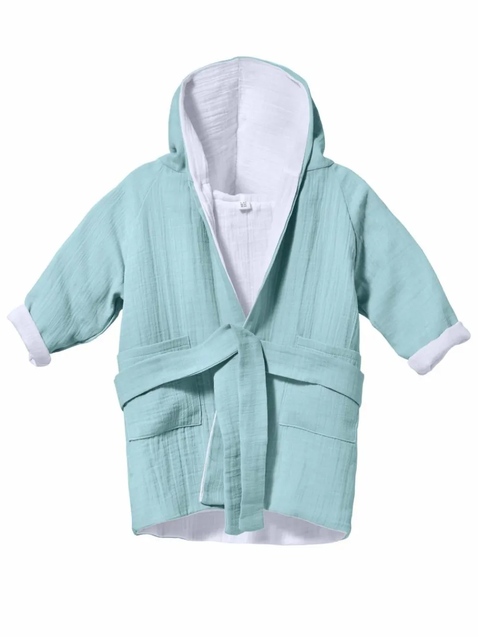 Mababu Mädchen<Mädchen Baby-Bademantel aus Musselin für Babys grün uni