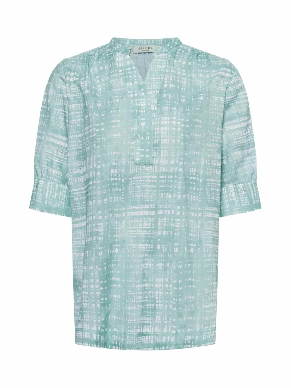 Die Tunikabluse von Maerz kombiniert erfrischende Eleganz mit liebevollen Details wie den ballonförmigen Ärmeln mit zarten Rüschen und dem kunstvoll gestalteten Ausschnitt – ein vielseitiges Stück aus reiner Baumwolle, das alle modischen Wünsche erfüllt.