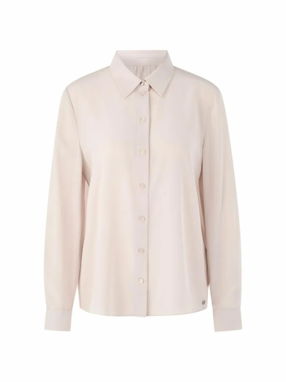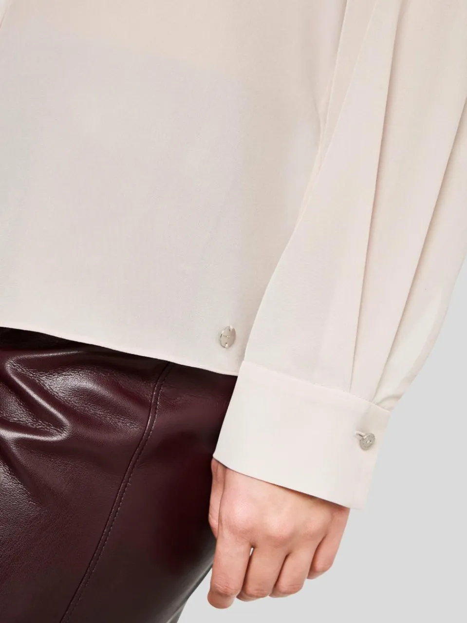 Elegante Bluse mit fließendem Fall. Das hochwertige Seidenmaterial sorgt für einen exquisiten Look. Die Bluse ist locker geschnitten und hat edle Einknopf-Manschetten. Der Schmuckknopf am Kragen und der Logo-Anhänger am Saum setzen Akzente.