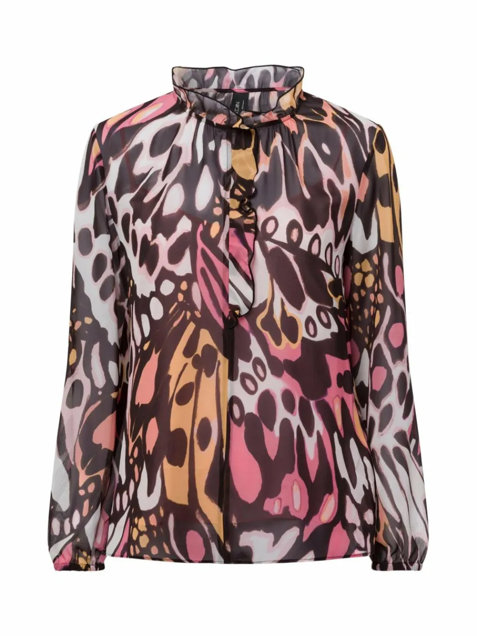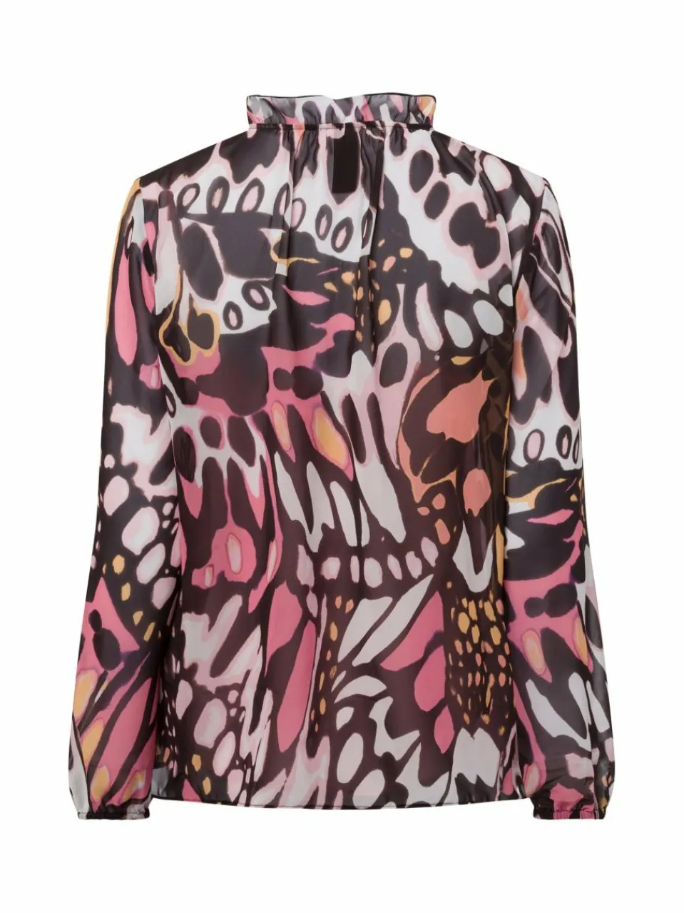 Dieses bezaubernde Blusenshirt ist ein echter Hingucker. Der moderne Volant-Kragen und der kleine Ziernopf sind echte Highlights. Und die Gummizug-Bündchen am Ärmel machen es noch gemütlicher.