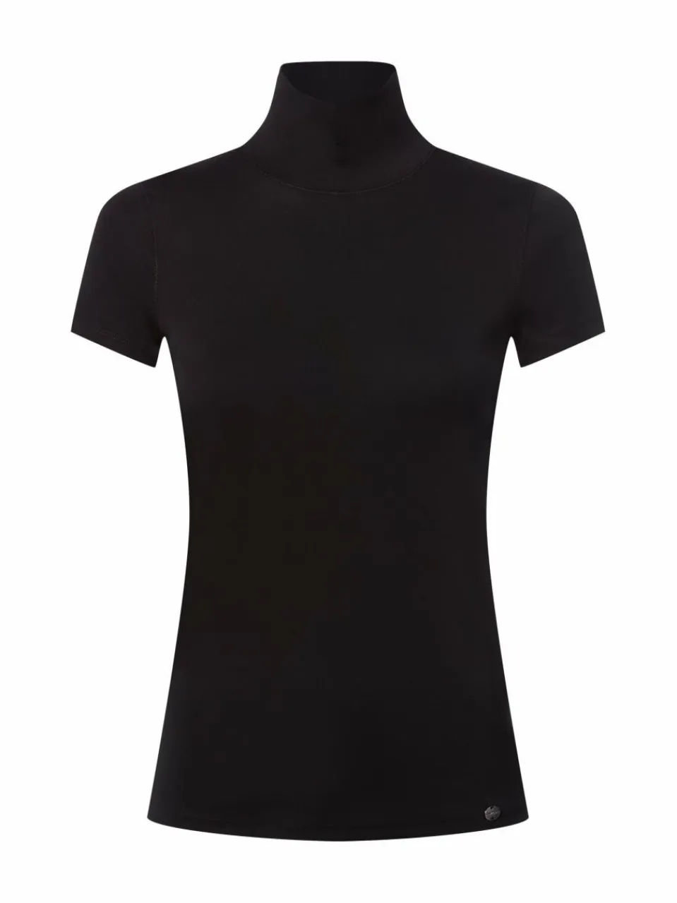 Der Stehkragen lässt sich zu einem süßen Hemdkragen umkrempeln und verleiht dem zeitlosen Shirt von Marc Cain Collections einen eleganten Appeal.