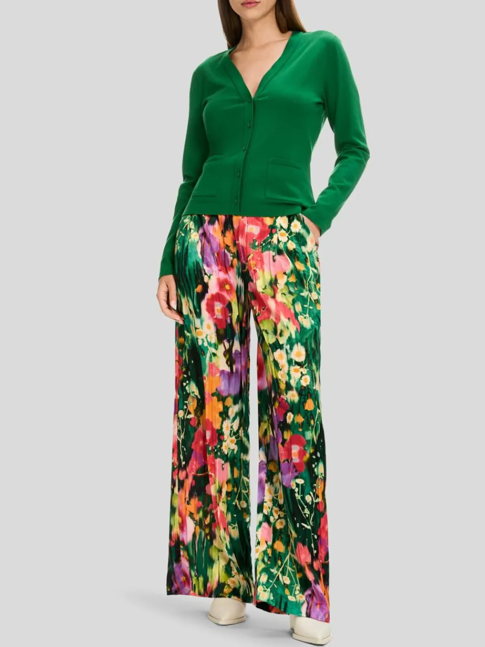 Dieser Cardigan lässt sich ideal kombinieren. Er präsentiert eine lockere Silhouette mit V-Neck und Knöpfen. Aufgesetzte Taschen erhöhen den Komfort. Das Modell aus einem Material-Mix mit Viskose ist „Knitted in Germany“: Das Verstricken der Garne auf hochmodernen Strickmaschinen und die Veredelung der Stoffe geschehen am Standort Deutschland. Zusammengenäht werden die einzelnen Teile wie Ärmel, Vorderteil etc. in europäischen Partnerbetrieben.
