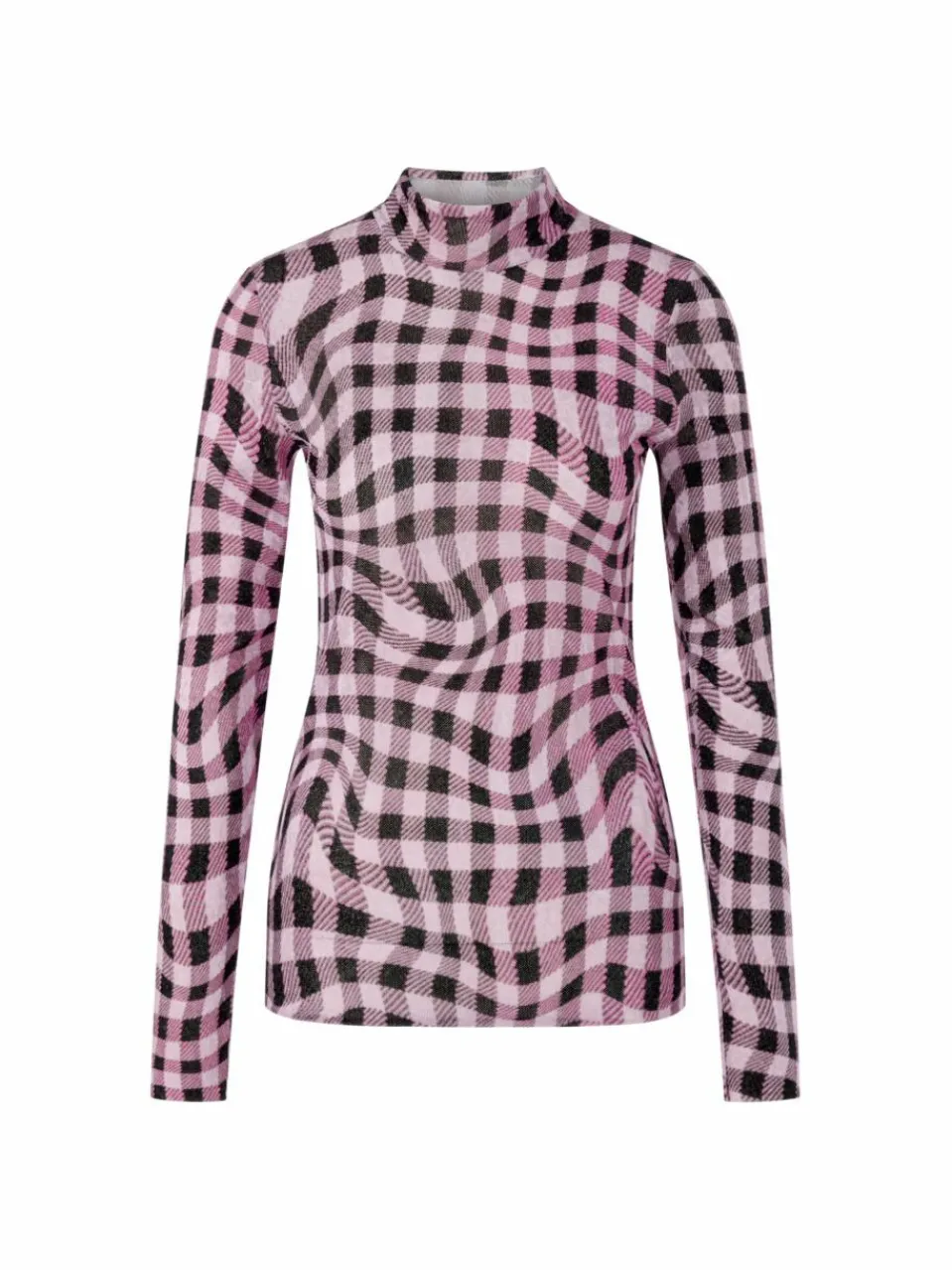 Dieses Langarmshirt besticht durch seinen eleganten Stehkragen und die Netz-Optik. Die Oberfläche des leicht transparenten Stoffs ist samtig weich und die Passform ist figurbetont. Das besondere Karo-Muster macht das Shirt zu einem echten Hingucker. Es kann beispielsweise perfekt durch einen Blazer ergänzt werden.