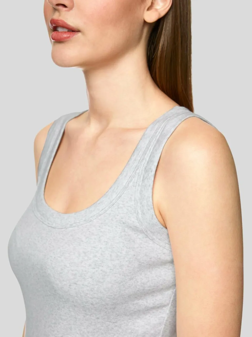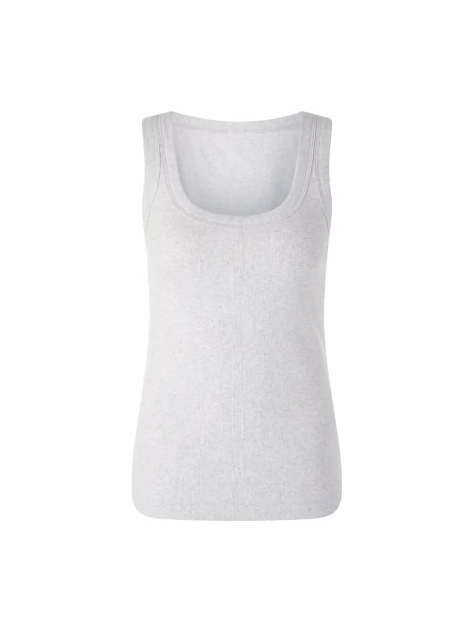 Das ärmellose Top ist aus softem und flexiblem Baumwollripp. Es ist körpernah geschnitten und hat markante Einfassungen an Dekolletee und Armausschnitten. In seiner minimalistischen Art ist es ein perfektes Basic.