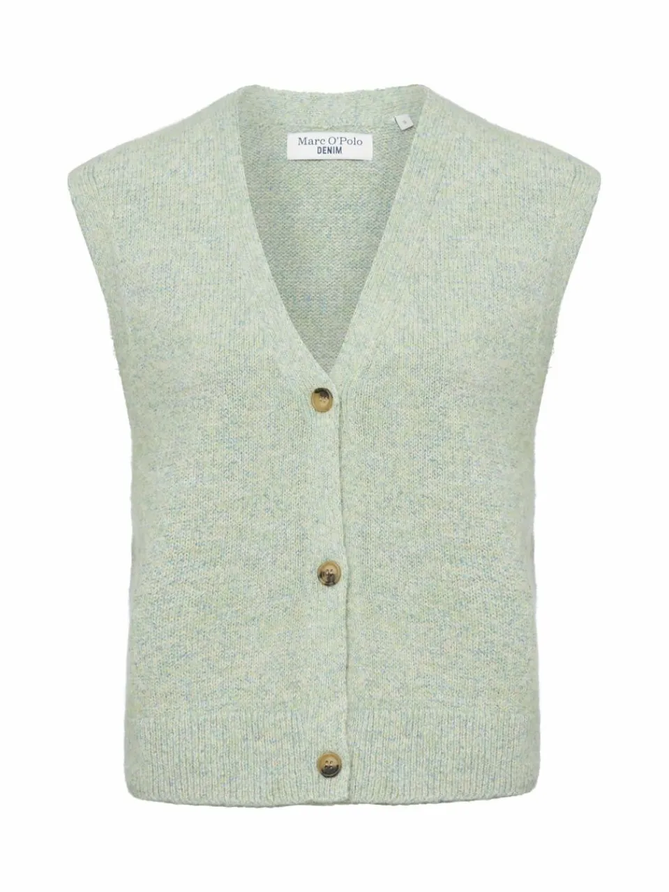 Der Baumwoll-Mix mit Alpaka-Anteil macht die relaxt geschnittene Strickweste von Marc O’Polo Denim zum komfortablen Allrounder für Looks mit Blusen und T-Shirts gleichermaßen.