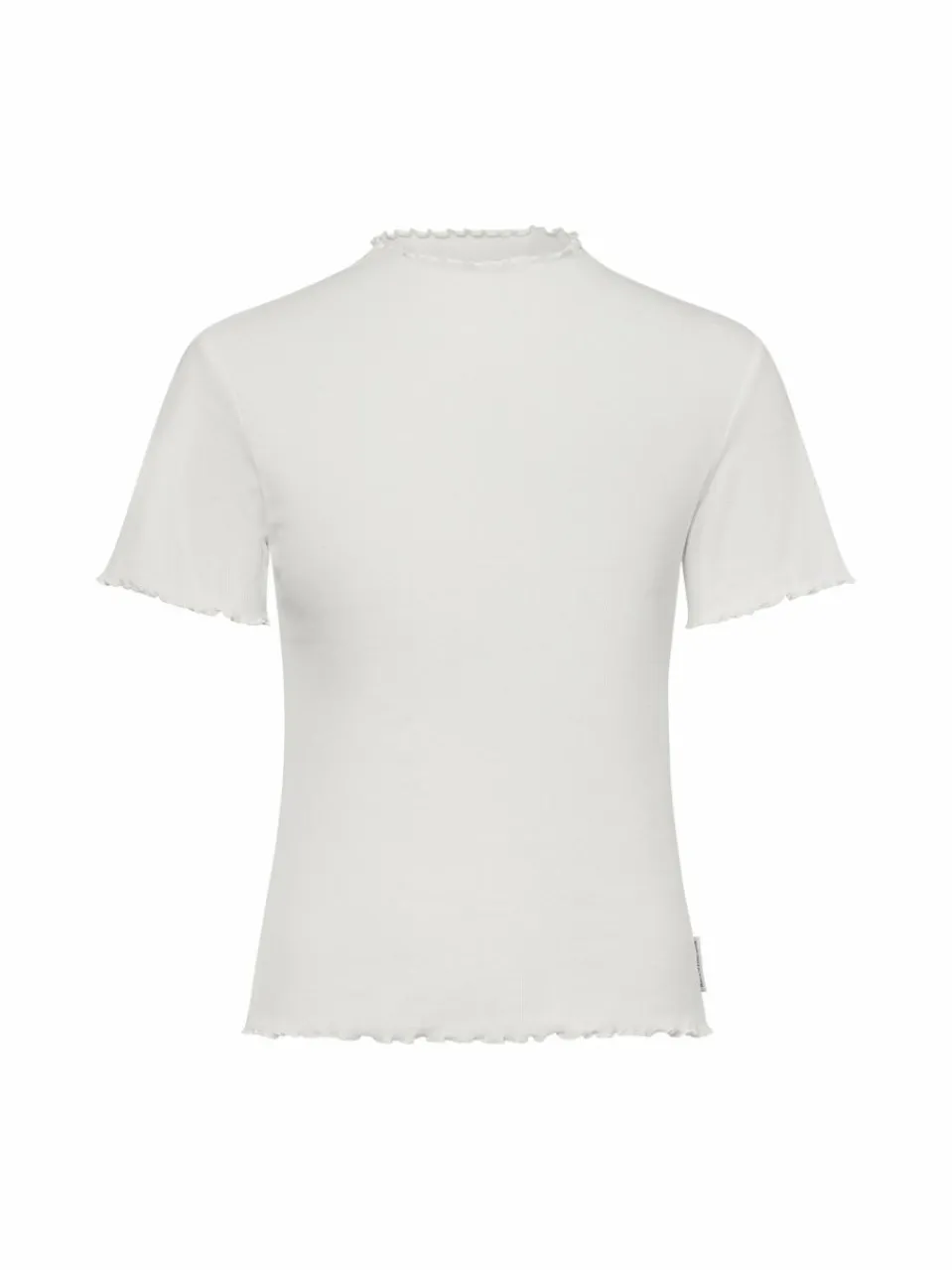 Feminin und vielseitig: Das Marc O’Polo T-Shirt im Slim Fit begeistert mit kurzen Ärmeln, Stehkragen und verspieltem Rüschensaum.
