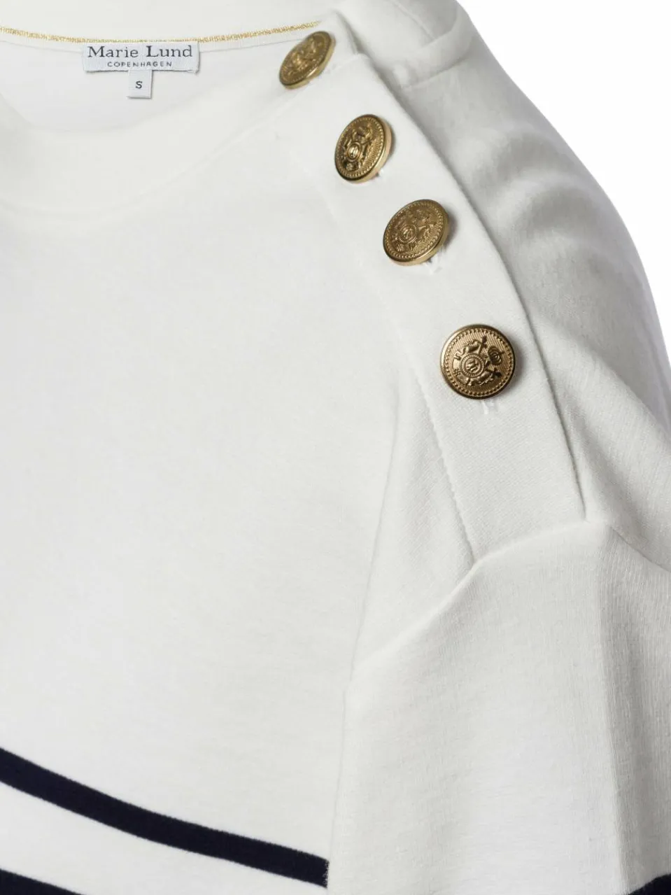 Mit Streifenmuster und maritimer Knopfleiste im Schulterbereich ist das Marie Lund Sweatshirt der perfekte Begleiter für frühlingshafte und sommerliche Wochenend-Looks.