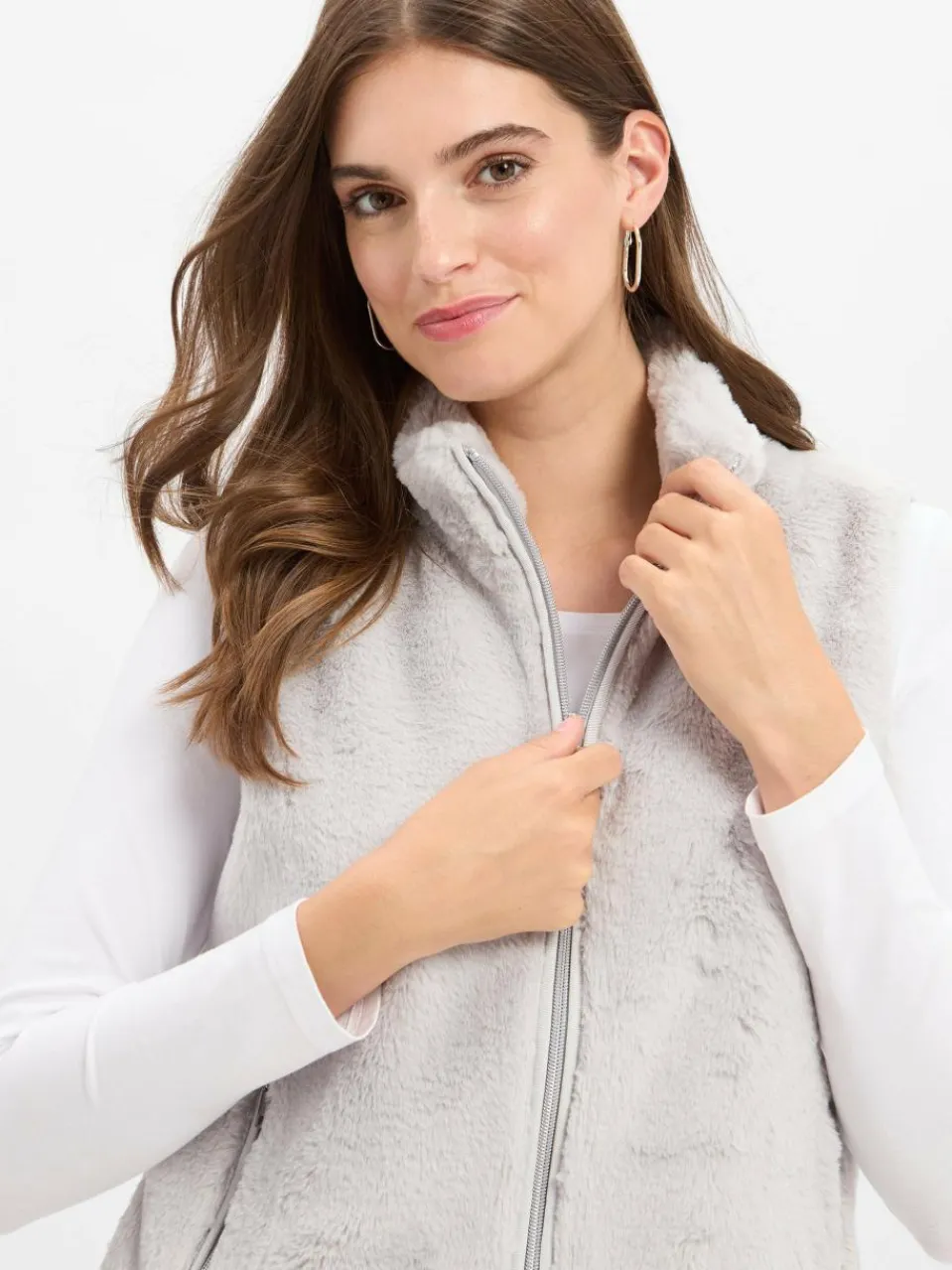 Gibt jedem Look eine trendige Note und ist perfekt für die Übergangszeit: die Marie Lund Weste aus kuscheligem Kunstfell mit praktischem Stehkragen.