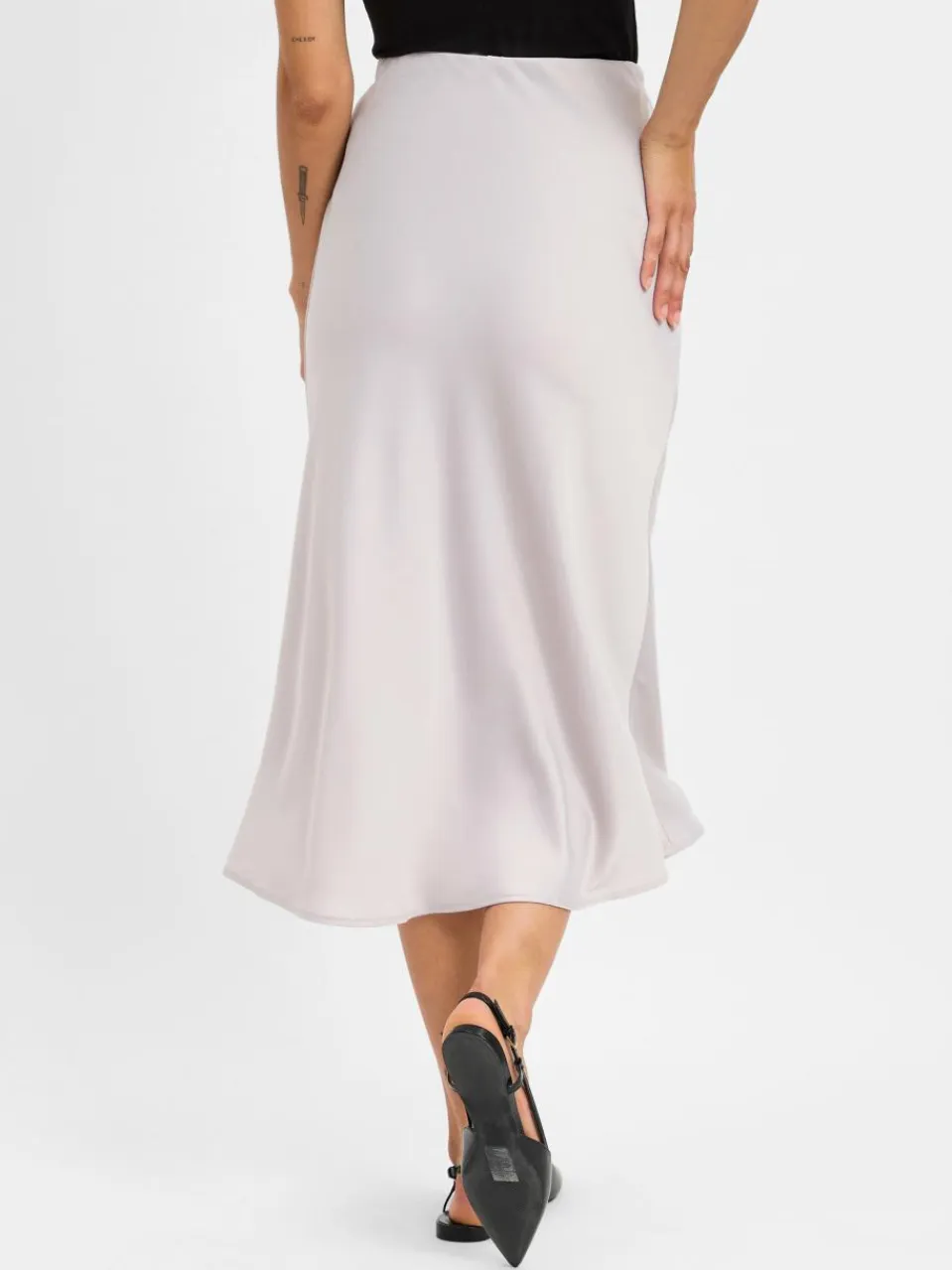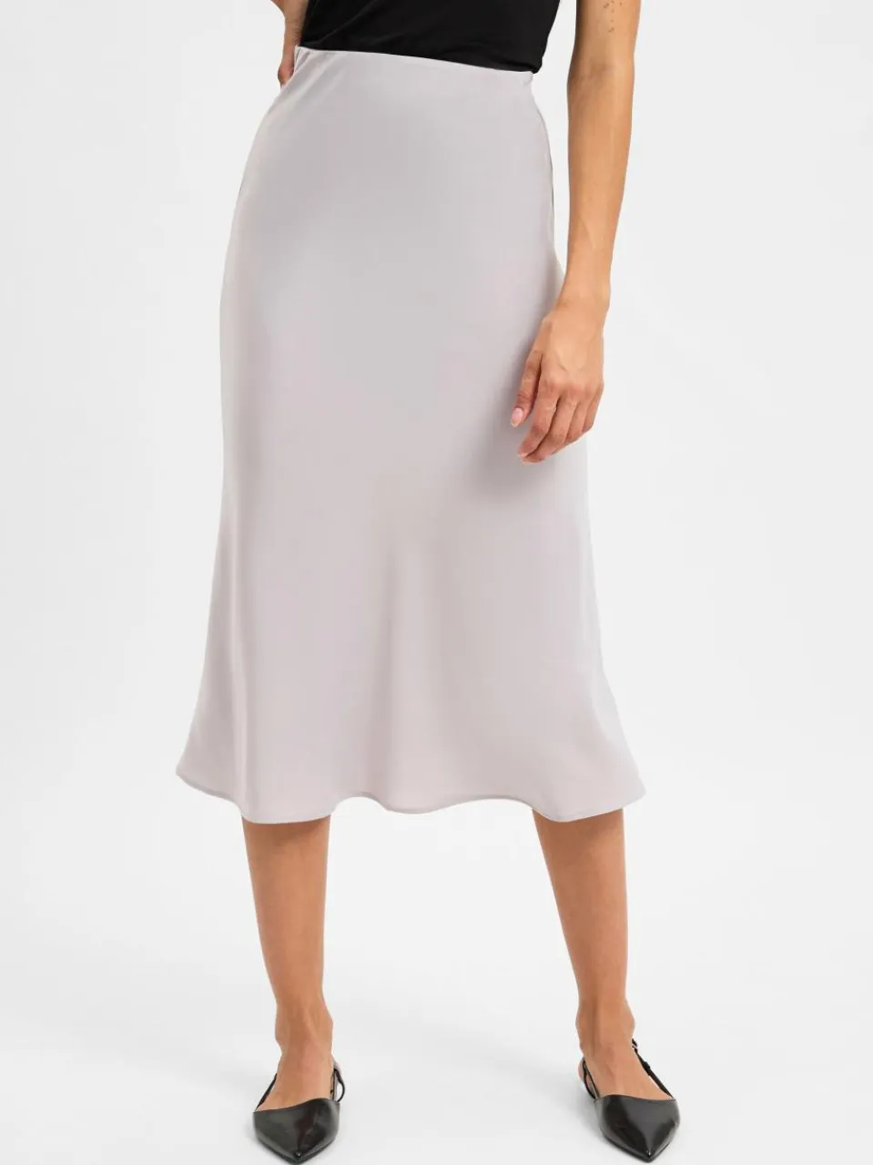 Als Essential für die moderne Garderobe begeistert der A-Linien-Rock von Marie Lund in changierender Satinqualität.