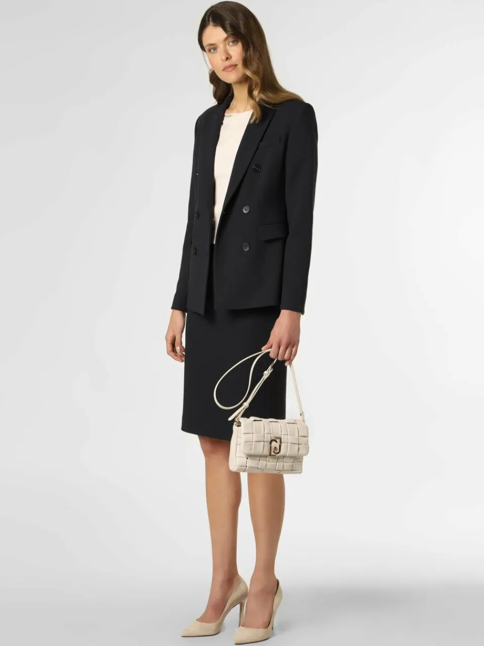 Der Rock von Marie Lund ist der Inbegriff eines stilvollen Klassikers. Der Rock ist Teil eines Baukasten-Anzugs, kann aber auch allein getragen werden.