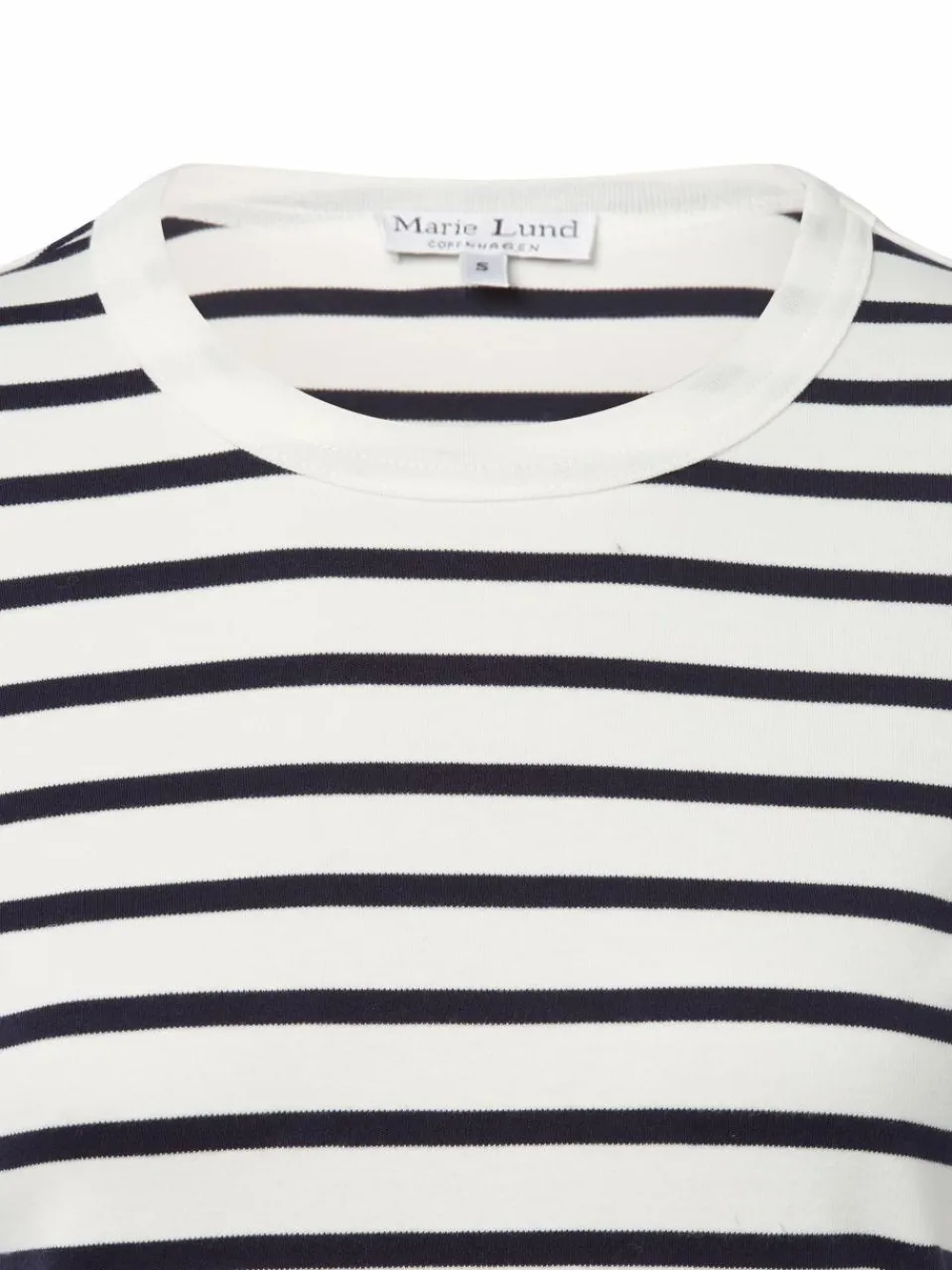 Das Longsleeve von Marie Lund aus weichem Baumwoll-Jersey und mit zeitlosem Muster gehört zu den Styles, die sich mühelos zu vielen Freizeit-Looks kombinieren lässt.