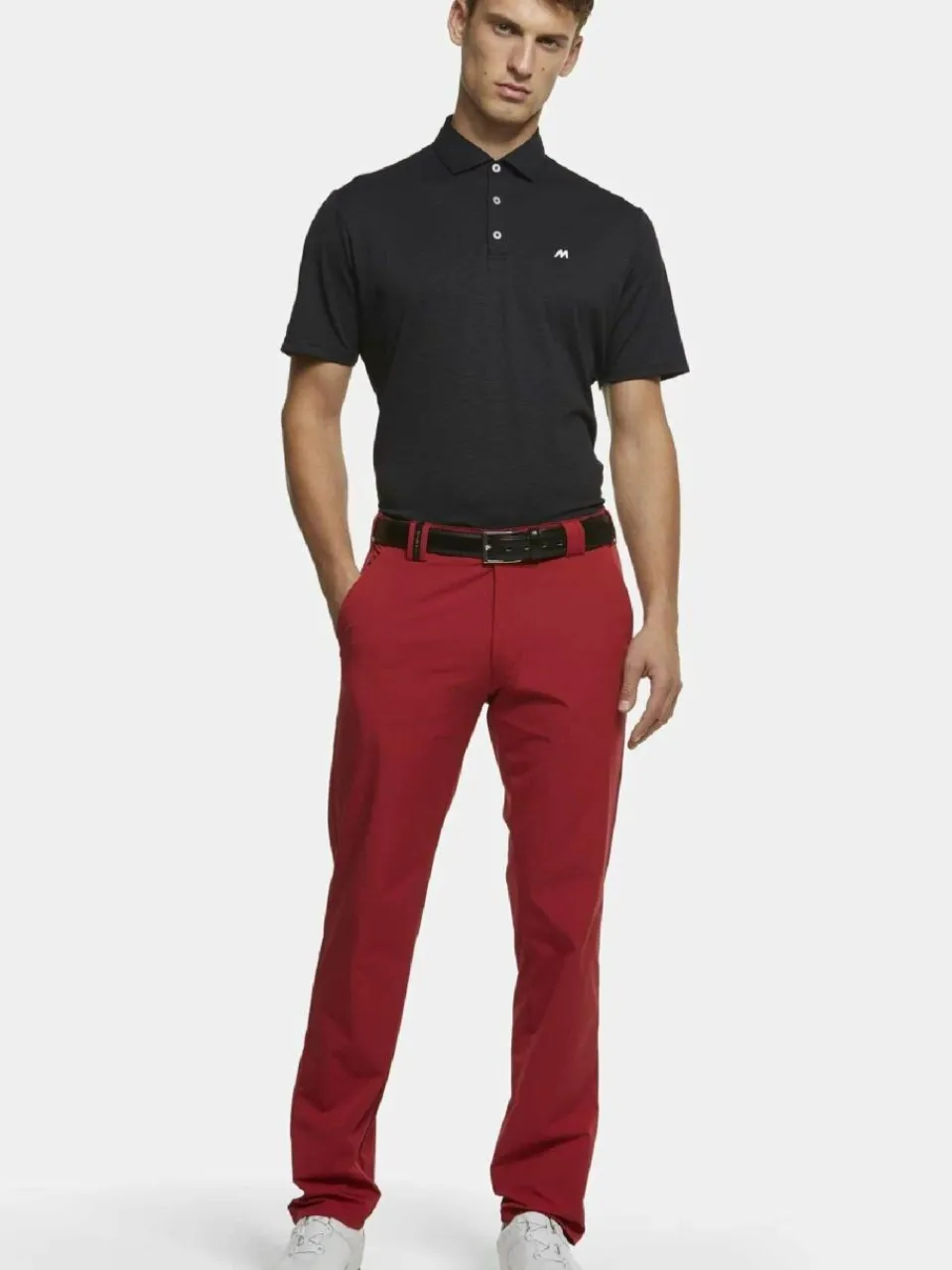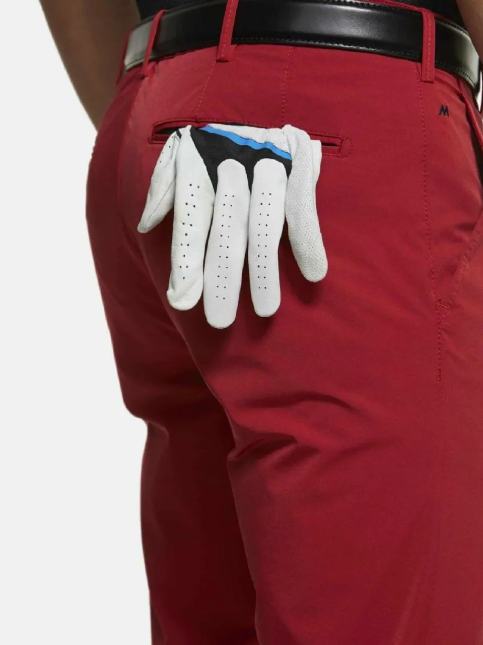 - Französische Seitentaschen, rechte Gesäßtasche mit Silikon-Stopper zur Fixierung des Golfhandschuhs, linke Gesäßtasche mit Reissverschluss. Shirt-Stop