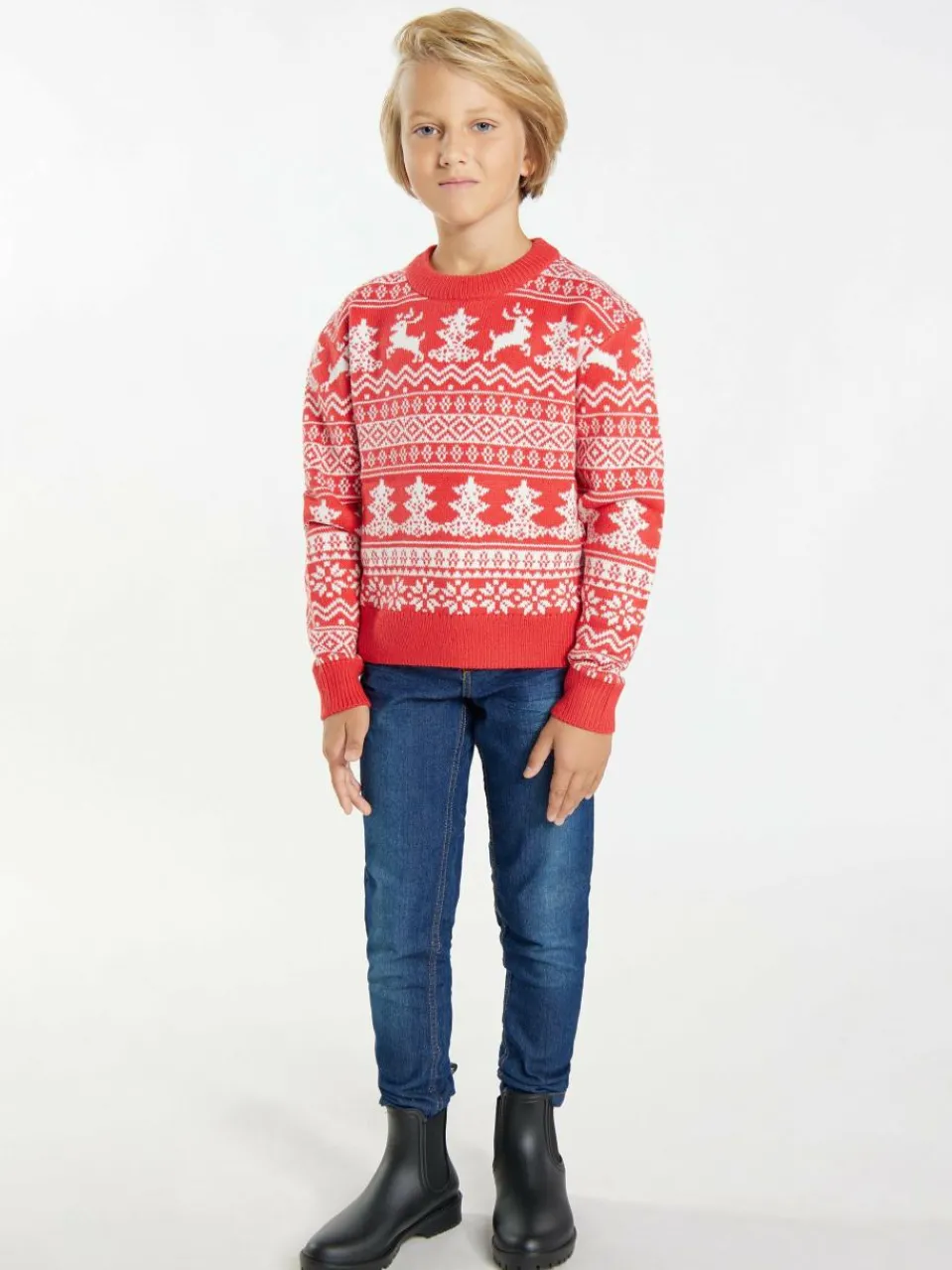 Da wird ja sogar der Weihnachtsmann neidisch: Mit dem Statement Pullover von Mo KIDS holt ihr euch den Christmas-Spirit in den Kleiderschrank. Die feierlichen Motive, bestehend aus Tannenbäumen, Rentieren und Schneeflocken sorgen schon in der Vorweihnachtszeit für helle Freude. Das Material: ein kuschelig-weiches und wärmendes Garn mit formstabilen Rippstrickbündchen.