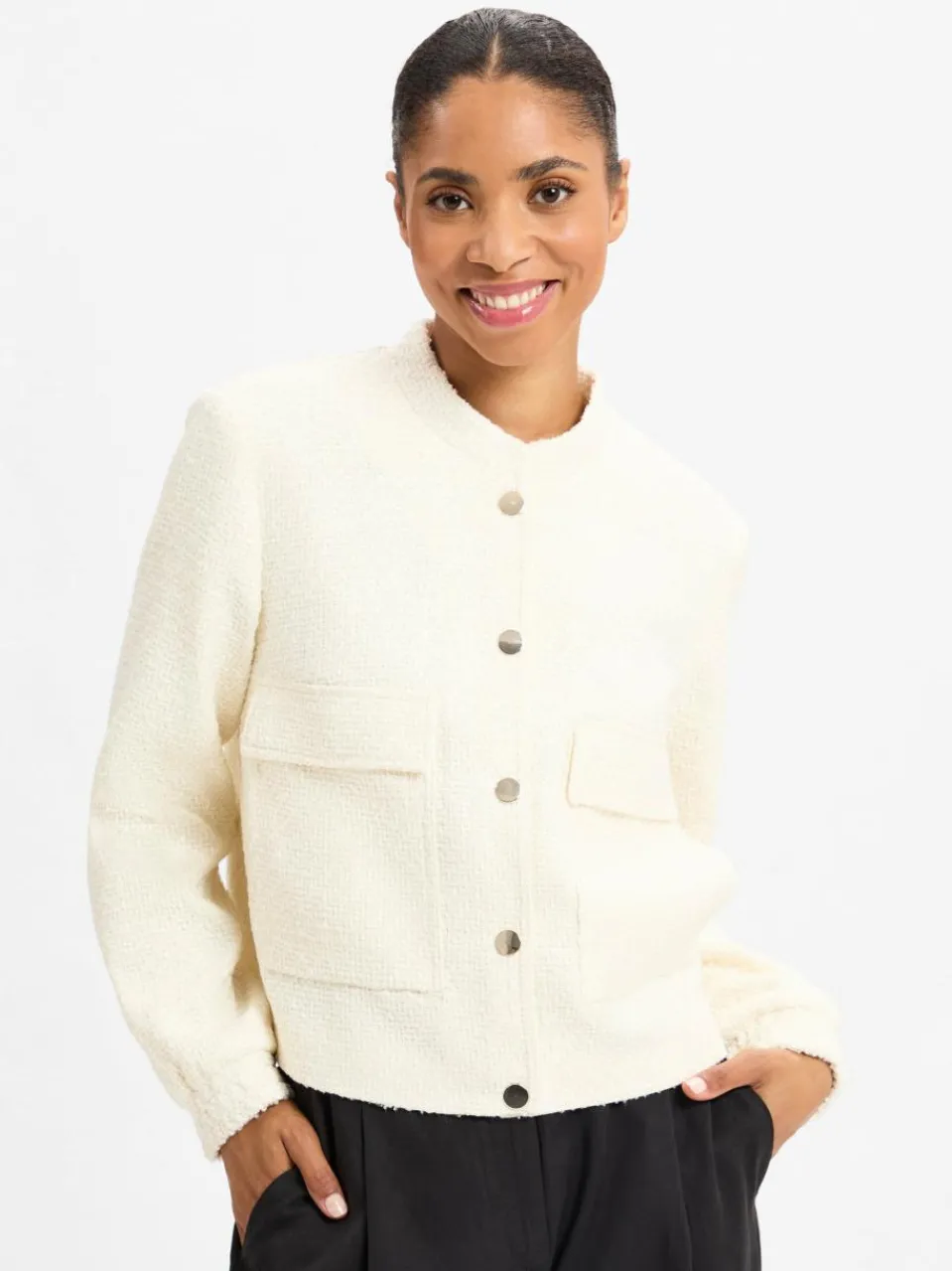 Der Blazer von More & More in stilvoller Bouclé-Optik ist perfekt für das Büro und sieht auch in der Freizeit super aus.