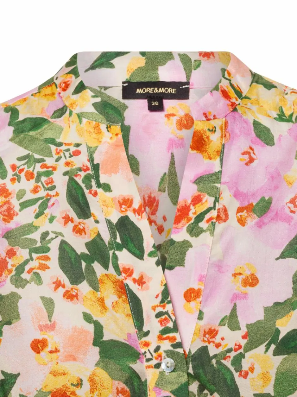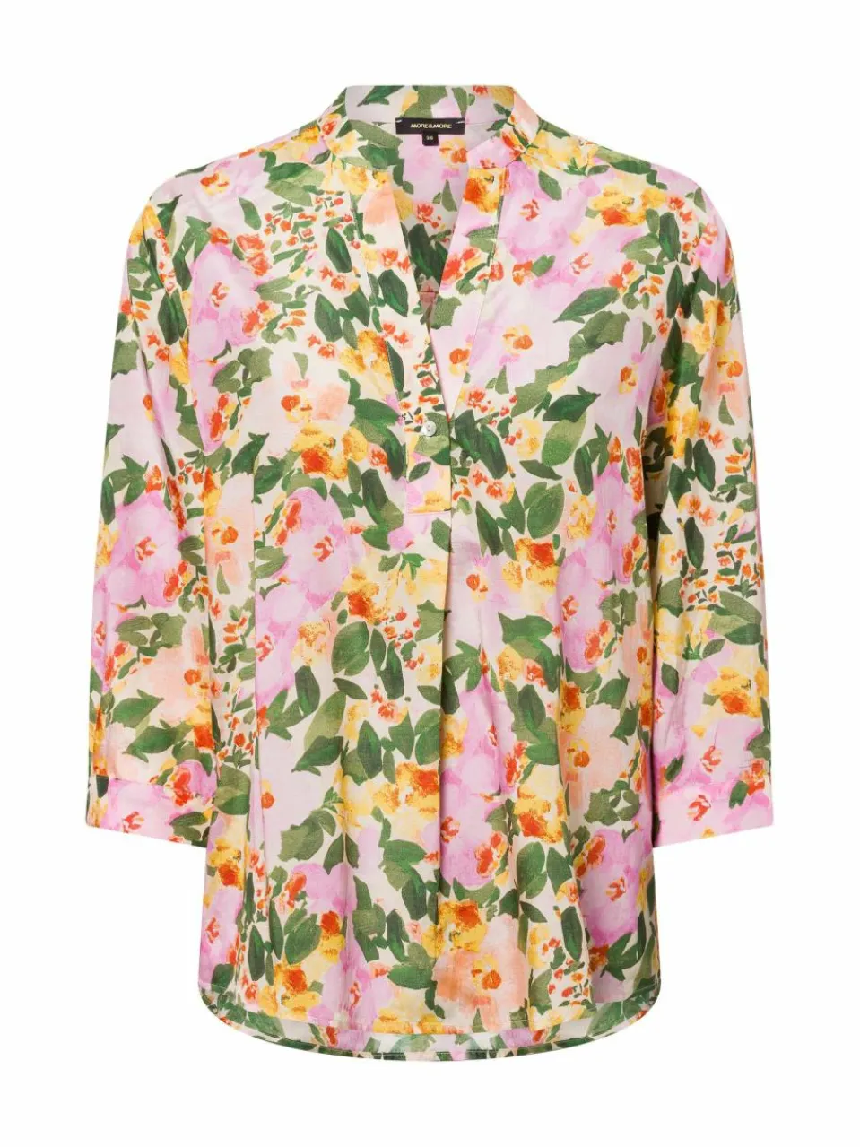 Die Tunikabluse von More & More vereint erfrischende Leichtigkeit mit liebevollen Details – vom floralen Allover-Muster bis zum verlängerten Rücken – und sorgt so für einen femininen Look mit modernem Charme.
