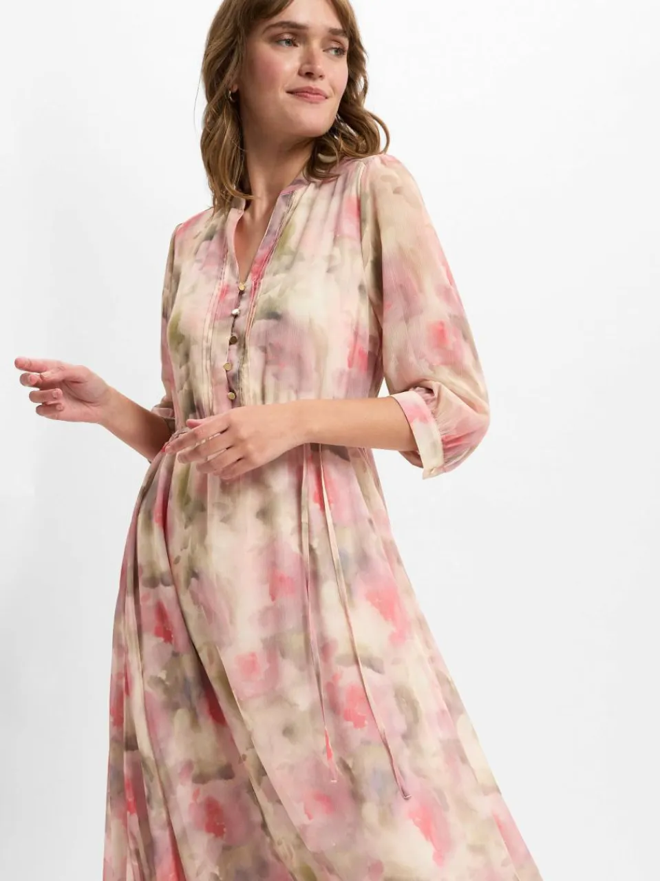 Das luftige Sommerkleid von More & More aus leichter Kunstfaser mit Bindegürtel vereint femininen Charme mit maximalem Tragekomfort.