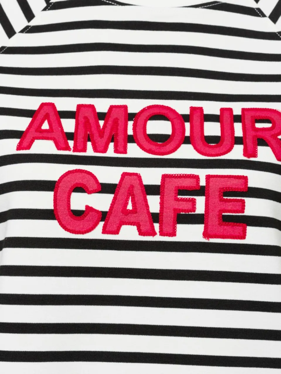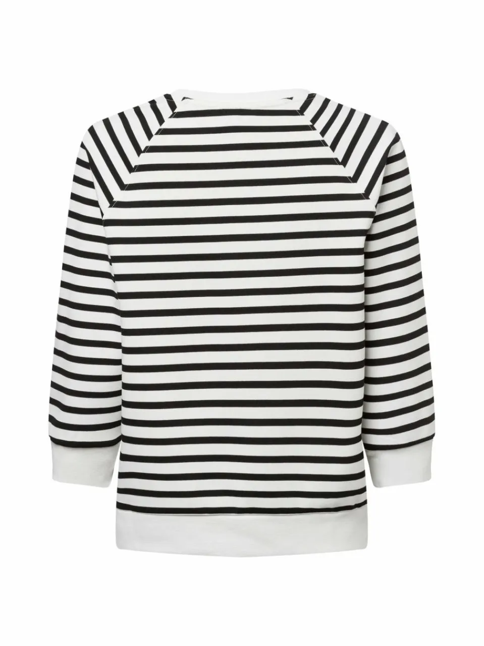 Das Sweatshirt von More & More versprüht mit seinen Allover-Streifen und dem großen Front-Stick französischen Charme und lässt sich sowohl elegant als auch lässig stylen.
