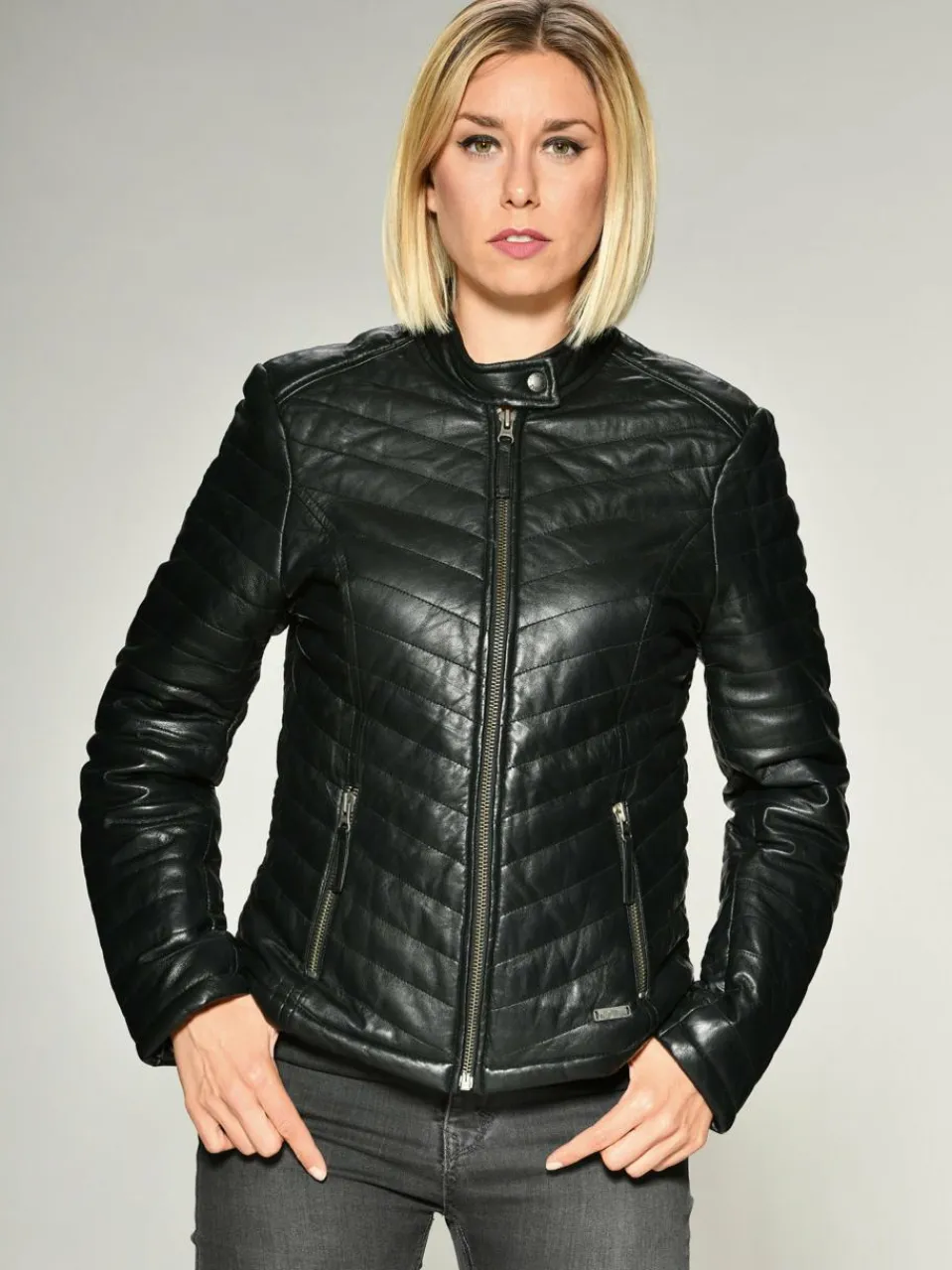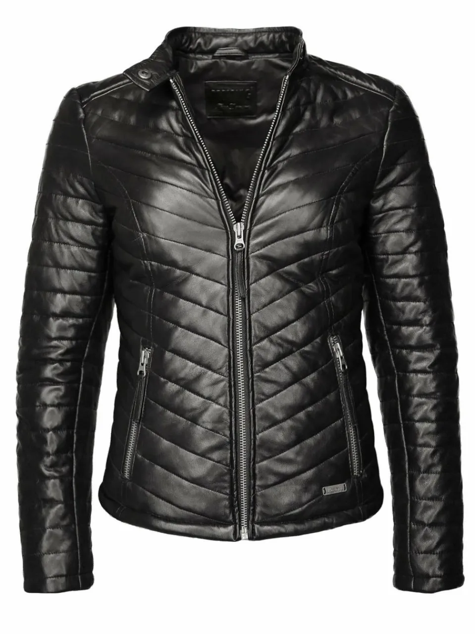 Trendige Damenlederjacke der Marke Mustang. Die aufwendig eingenähten seitlichen Einschubtaschen mit Zipper, sowie die sorgfältig eingearbeiteten Ziernähte, verleihen dieser Jacke ihren besonderen Look. Außerdem besitzt diese Lederjacke eine Thinsulate Fütterung, was für einen allzeit warmen und angenehmen Tragekomfort sorgt. Die Passform ist tailliert aber bequem gehalten. Diese Jacke bietet viele Kombinationsmöglichkeiten.