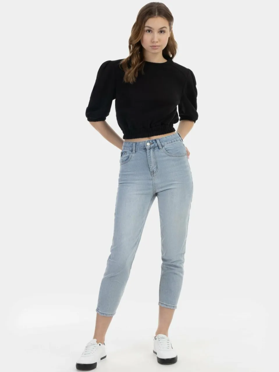 In leichter Cropped-Form und mit breitem elastischen Bund präsentiert sich der Sweatpullover von myMo. Besonders die verspielten Puffärmel mit elastischen Abschlüssen und die Ziernähte auf der Schulter verleihen dem in Italien hergestellten Modell eine coole, moderne Ausstrahlung. Gefertigt wurde das Design aus einem weichen Baumwoll-Mix, der sich im Sommer angenehm trägt.