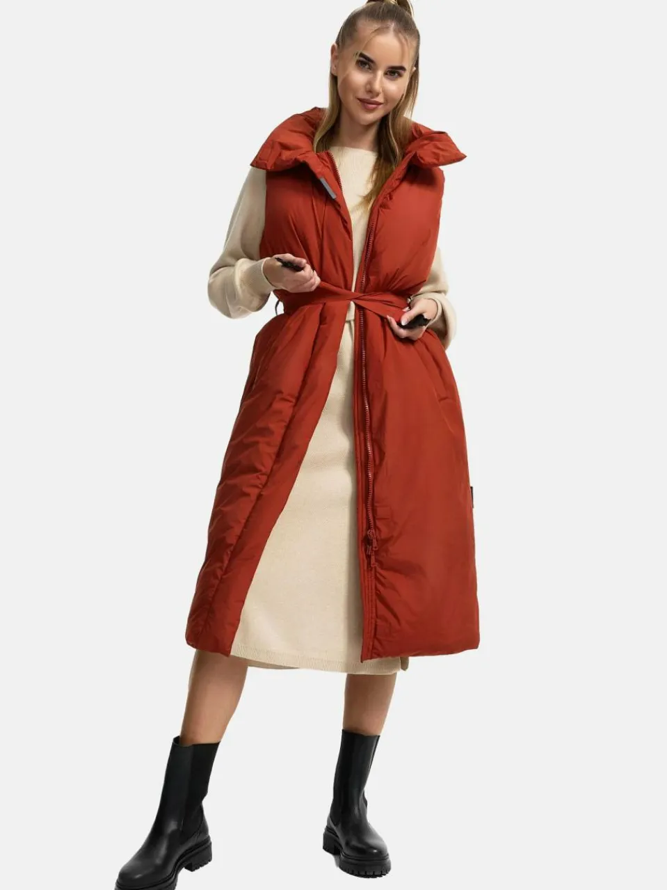 - Lange Ärmellose Damen Winterjacke mit Stehkragen