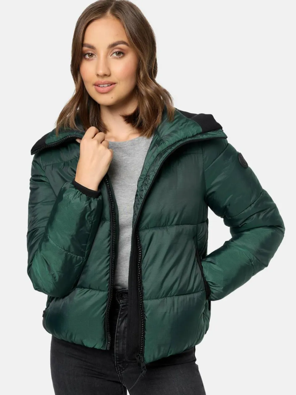 - Kurze Damen Steppjacke mit hohem Stehkragen
