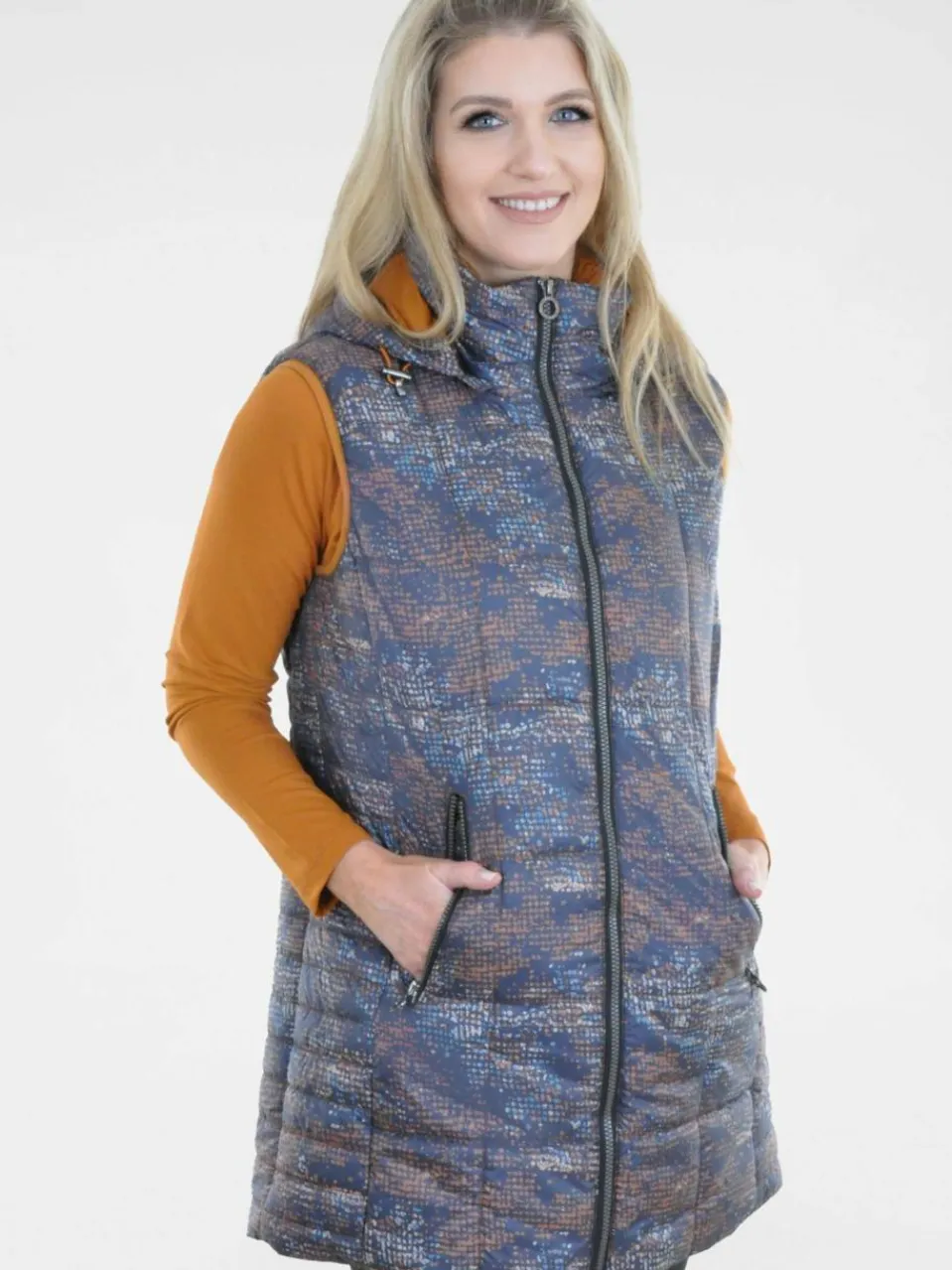 Ein außergewöhnliches Design für wundervolle Momente. Die Steppweste von NAVIGAZIONE im mehrfarbigen Print-Muster bringt Highlights in deinen Alltag. Die lange Form sorgt für ein kuscheliges Wohlbefinden und lässt sich mit dem Zwei-Wege-Reißverschluss besonders trageangenehm stylen. Optisch besticht sie durch ihre farblich abgestimmte Kapuze und dem Innenfutter. Mit den vielen Extras wie Reißverschlusstaschen, der abnehmbaren Kapuze und der dazugehörigen Kordel ist sie ein wahres Multitalent.