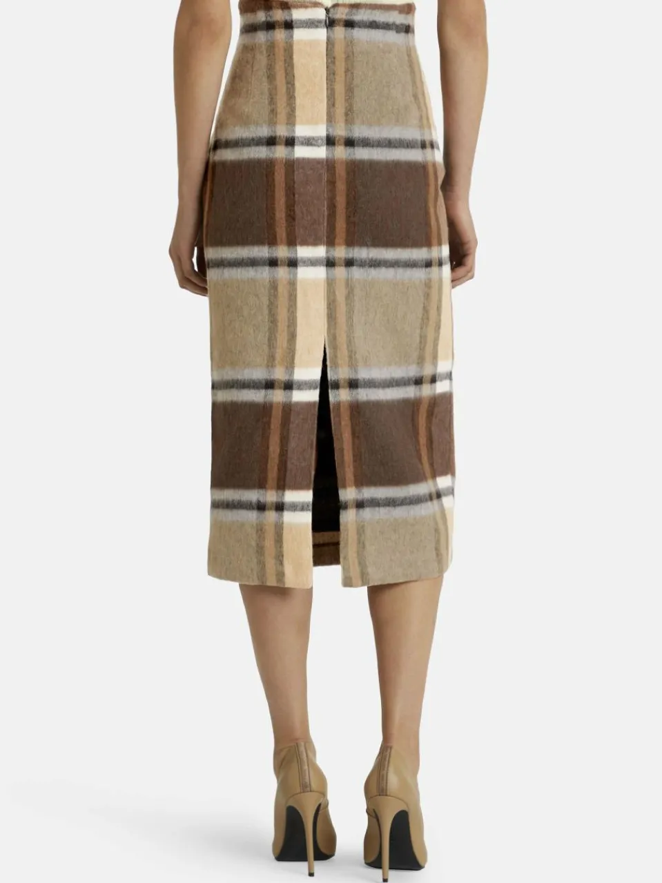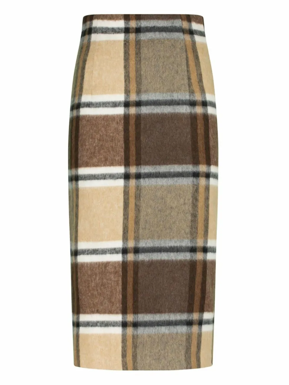 Der perfekte Begleiter zu herbstlichen Overlay Looks- der Bleistiftrock LANOWA von NICOWA! Das dunkelbraune Check-Design mit Wollanteil wurde in Italien gefertigt und besitzt einen klassischen mittellangen Schnitt samt hoher Taille.