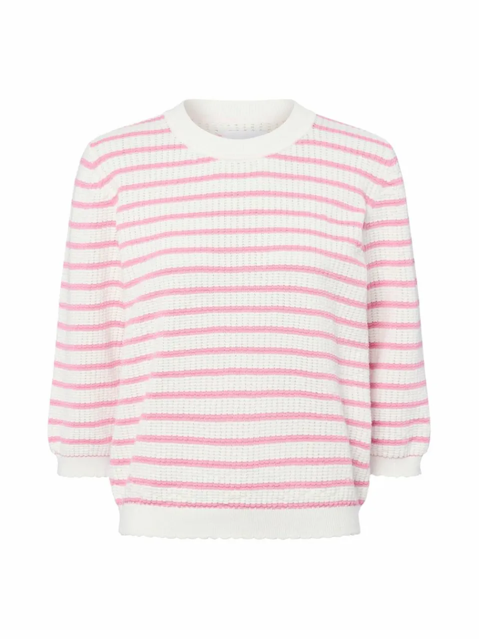 Der Nümph Pullover NUNicole aus Baumwolle zeigt sich mit einer griffigen Strickstruktur samt Lochmuster, welches den Look des Styles wirkungsvoll in Szene setzt.