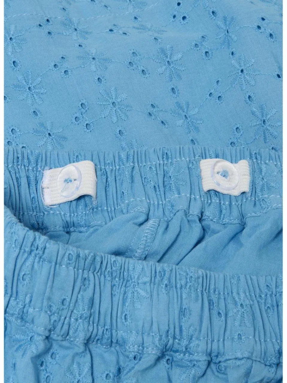 Diese Shorts überzeugen mit einem zarten, bestickten Lochmuster und einem femininen Look. Die normale Passform sorgt für bequemen Sitz und hohen Tragekomfort. Ein dehnbarer Bund und die verstellbare Bundweite mittels Knopflochgummi garantieren eine individuelle Anpassung. Das gewebte Label innen steht für sorgfältige Verarbeitung. Der Umschlagsaum verleiht den Shorts einen modernen Touch. Das weite Bein bietet optimale Bewegungsfreiheit und macht sie perfekt für aktive Tage. Leicht und luftig sind sie ideal für warme Sommertage. Kombiniere sie mit T-Shirts oder Tops für einen süßen Alltagslook. Das verspielte Design macht die Shorts zu einem echten Hingucker. Ein Must-have für stylische Mädchen.