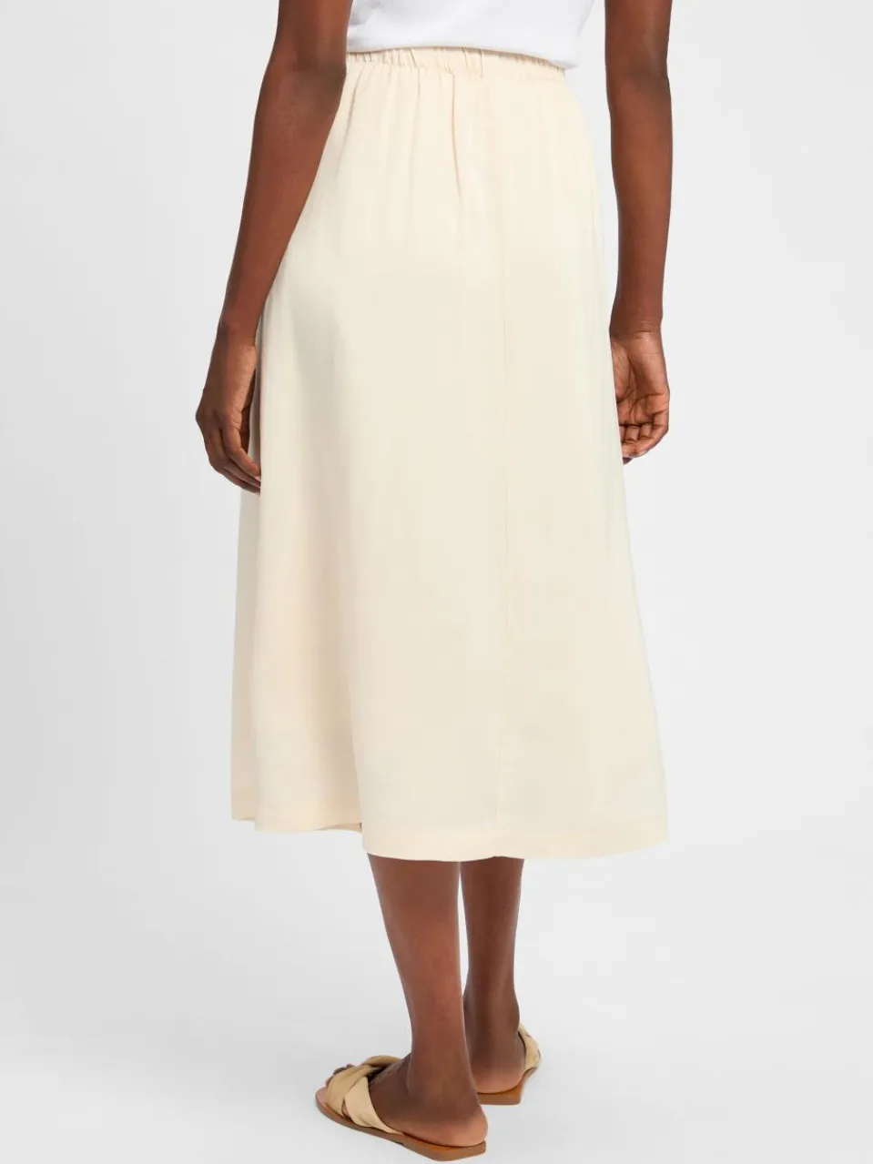 Der Opus Midirock Ronna fällt schön fließend, passt sich dank des Gummibundes optimal an und macht mit seinem puristischen Design zahlreiche Looks möglich.