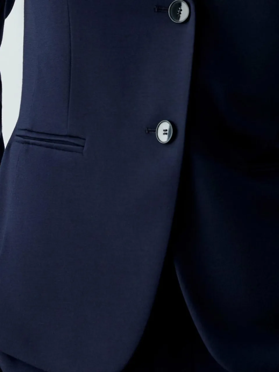 - Als Einreiher mit zwei Knöpfen gearbeitet