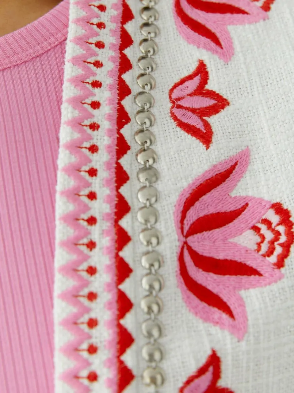 - Stickerei und Nieten Bordüre entlang den Kanten