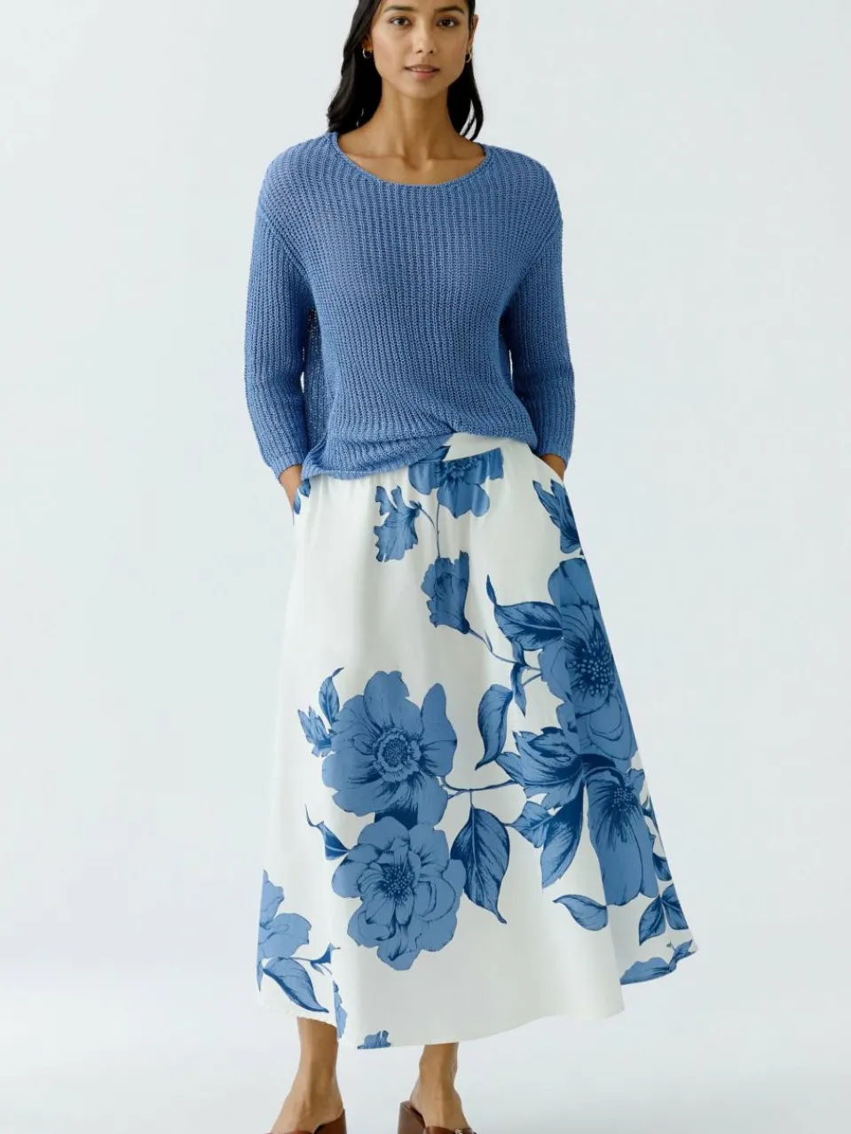 Ungefütteter Rock in floral bedruckter Baumwolle – jedes Teil ein Unikat