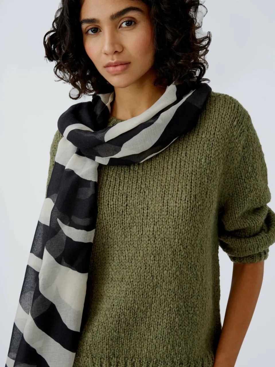Oui Schals & Tücher<Damen Schal schwarz weiß gemustert
